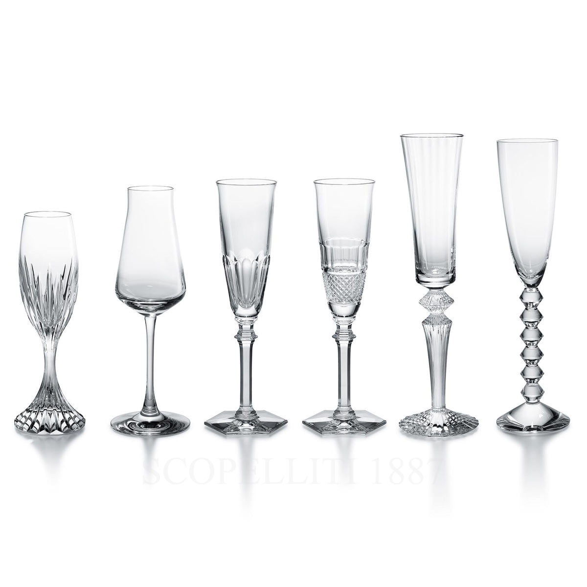 - Number of pieces: 6 assorted champagne flutes