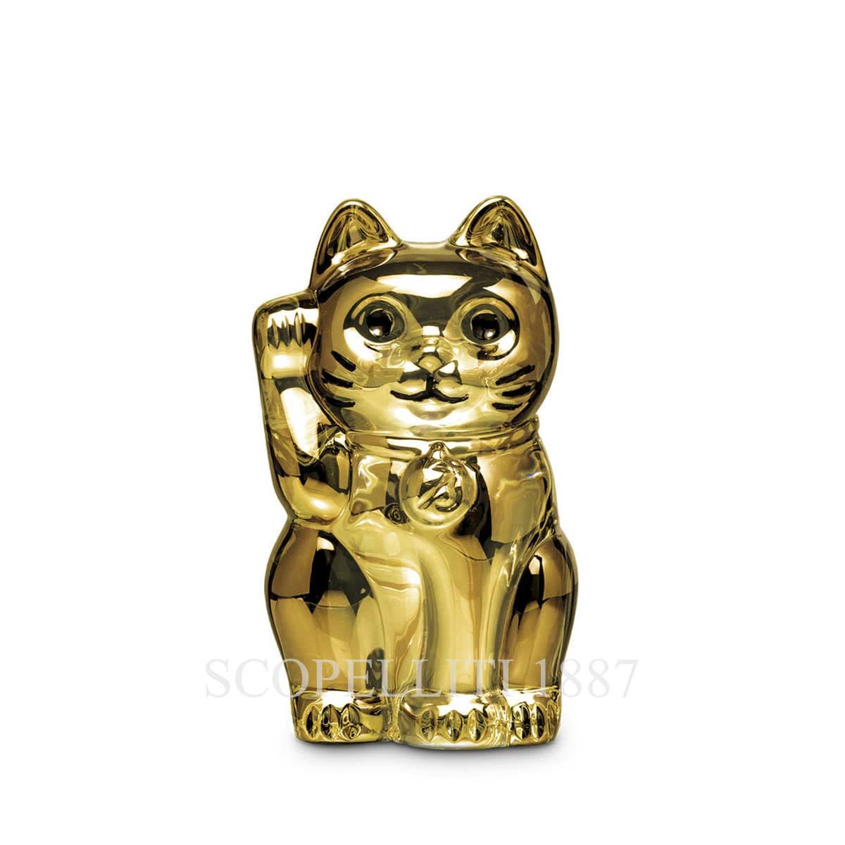 Crafted in France from fine crystal, the cat raises its right paw in the traditional gesture believed to protect wealth and attract positive energy.