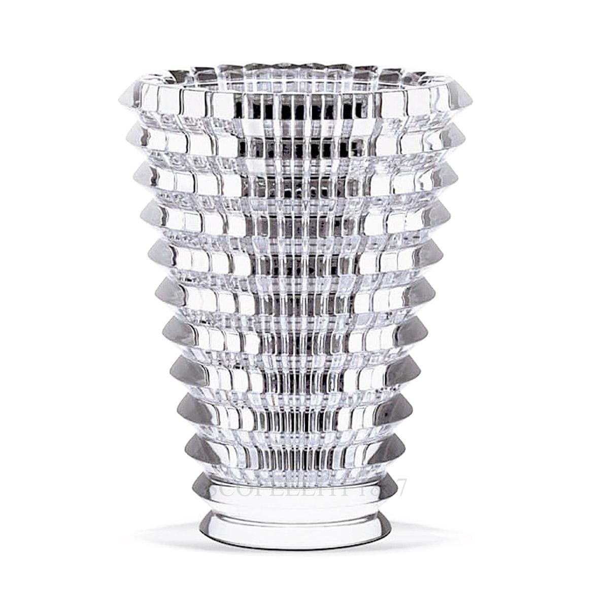 The Eye Collection by Baccarat is renowned for its unique optical designs, combining horizontal and vertical cuts that play with light to create captivating visual effects. Each piece in the series, including this vase, embodies Baccarat’s rich history of crystal artistry, offering both beauty and functionality.