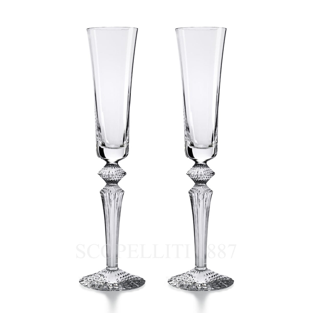 The Baccarat Gift Set 2 Flutes Mille Nuits Flutissimo Clear, with its elongated stems and sculptural patterns, reflects the series’ signature design. More than just glassware, they are a true expression of Baccarat’s tradition of excellence, combining luxury, craftsmanship, and timeless beauty.