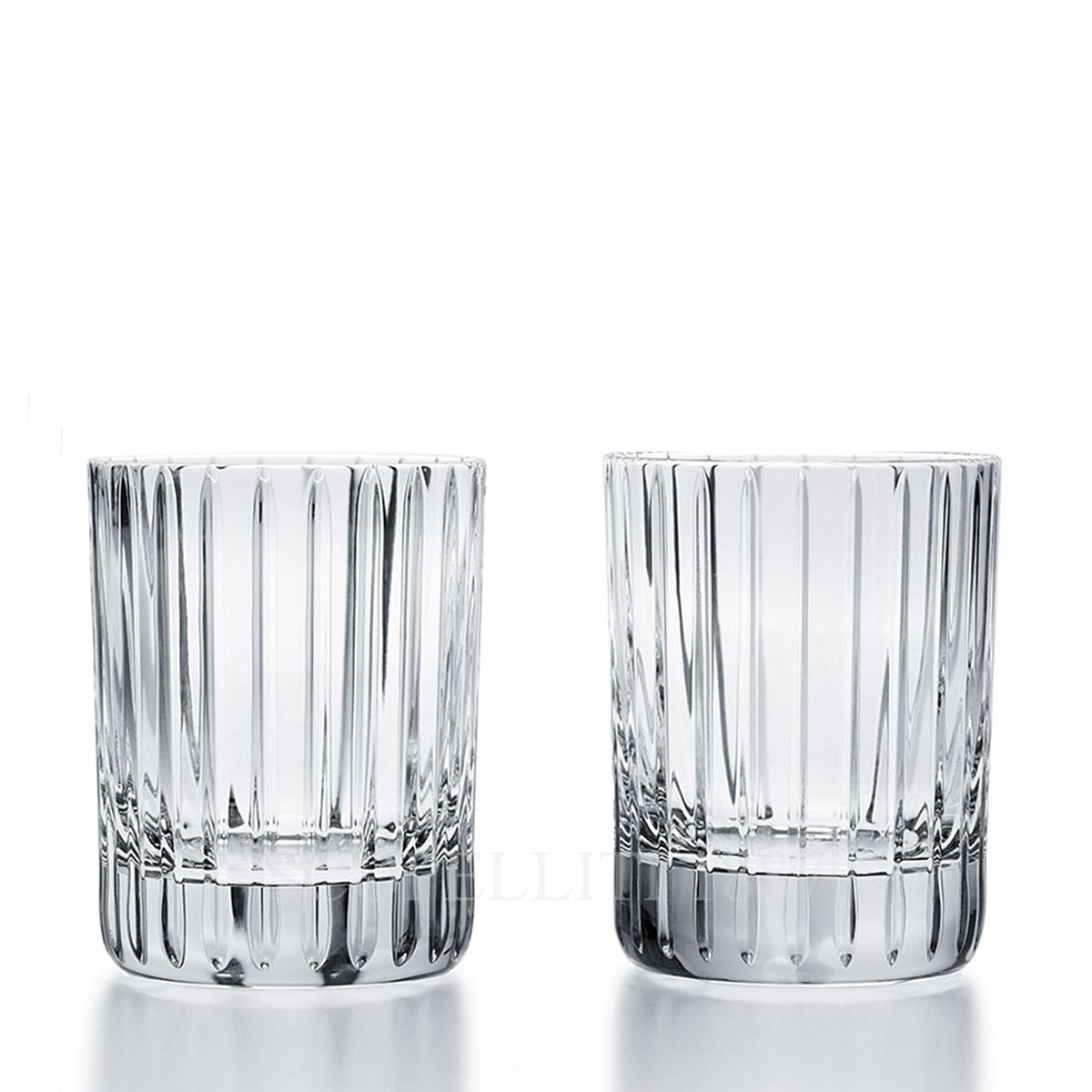 The Baccarat Harmonie Set Two Crystal Tumblers Medium showcases exquisite craftsmanship, featuring the signature vertical cuts that enhance the brilliance of the clear crystal.
