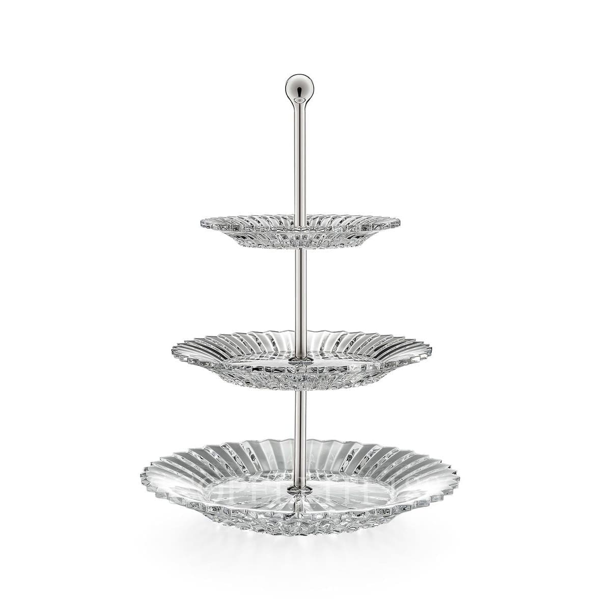 The Baccarat Mille Nuits Crystal Centerpiece is an exquisite display piece that combines functionality with the refined elegance Baccarat is known for. Crafted from fine crystal, this stand features three tiers, each with beautifully detailed cuts that sparkle and reflect light in a mesmerizing way.