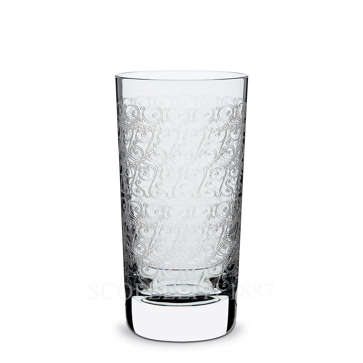 The Baccarat Rohan Crystal Highball Glass stands out for its signature acid-etched S-scroll pattern, giving each piece an elegant and unique character. The delicate curves and beveled base bring a modern feel to this classic collection, originally created in 1931. Perfect for cocktails, long drinks, or even sparkling water, the Baccarat Rohan Crystal Highball Glass combines everyday functionality with Baccarat’s renowned craftsmanship. The crystal’s brilliance and the intricate detailing make it a beautiful addition to any home bar or glassware collection.