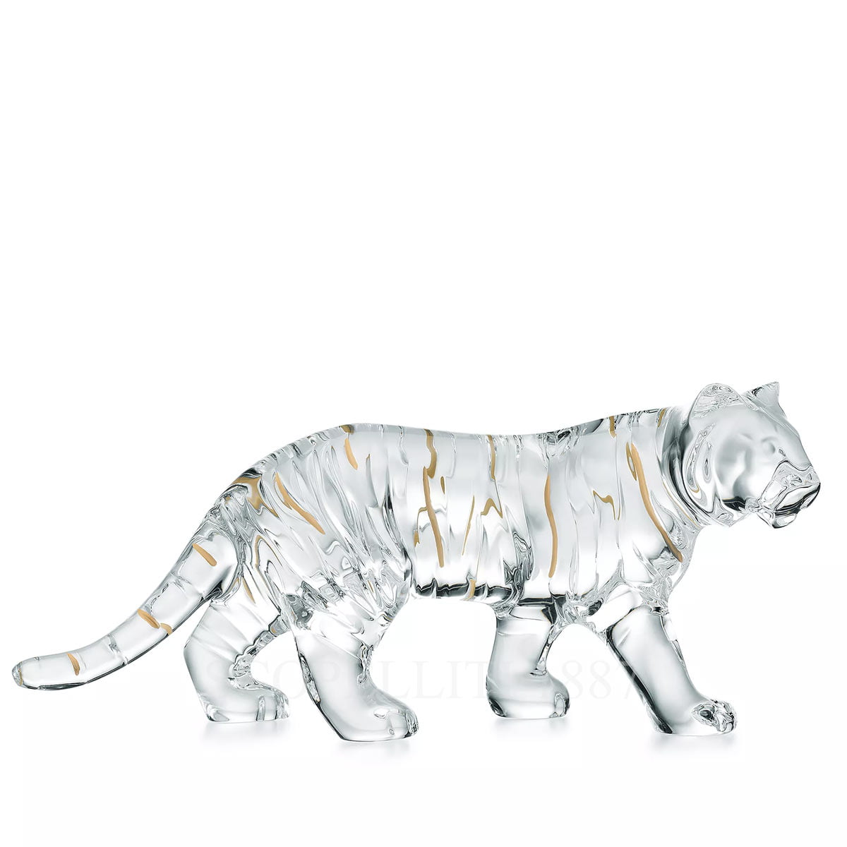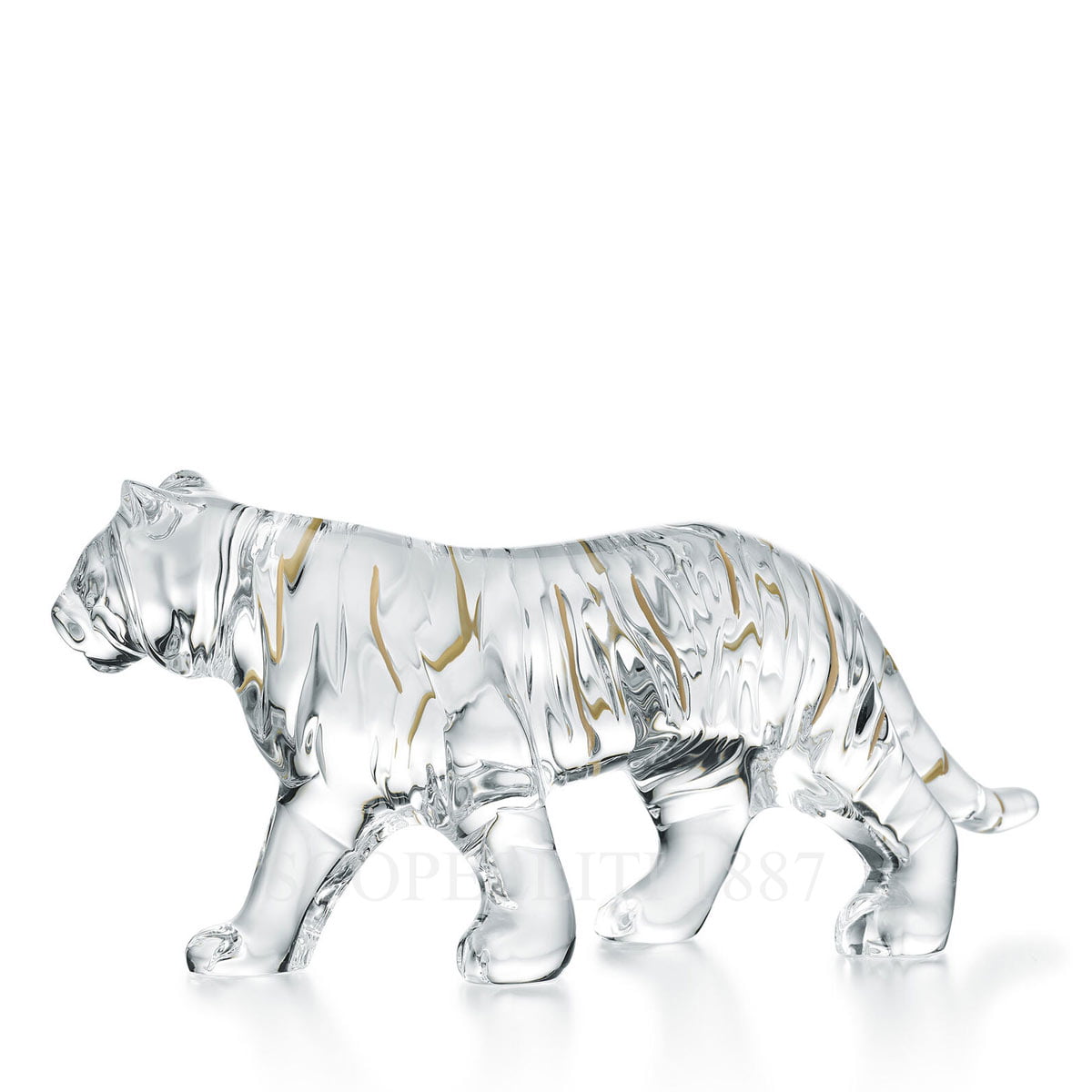 Baccarat Zodiac Tiger Figurine Clear with Gold Stripes