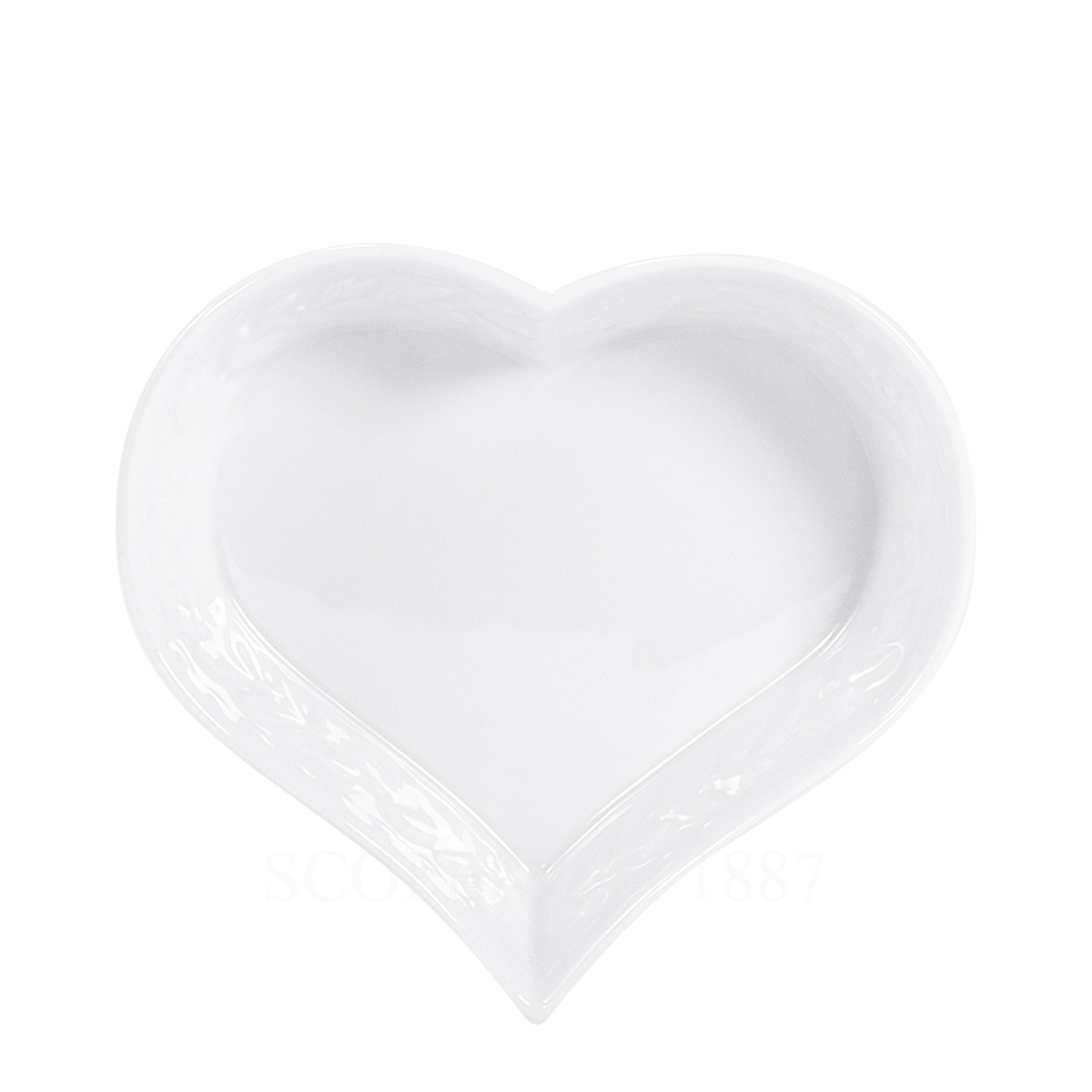 The Bernardaud Louvre heart dish large is a refined porcelain piece with a romantic design that is both functional and decorative. Perfect for serving appetizers, desserts, or small delicacies, it also makes a charming gift or decorative accent for the table. Inspired by the architectural motifs of the Louvre museum, the engravings evoke the elegance of French decorative styles spanning from the Renaissance through to the Second Empire. Crafted in pure white porcelain, it blends timeless artistry with modern versatility. Practical as well as beautiful, this heart dish is dishwasher, oven, and microwave safe, embodying the durability and sophistication of Bernardaud Limoges porcelain.