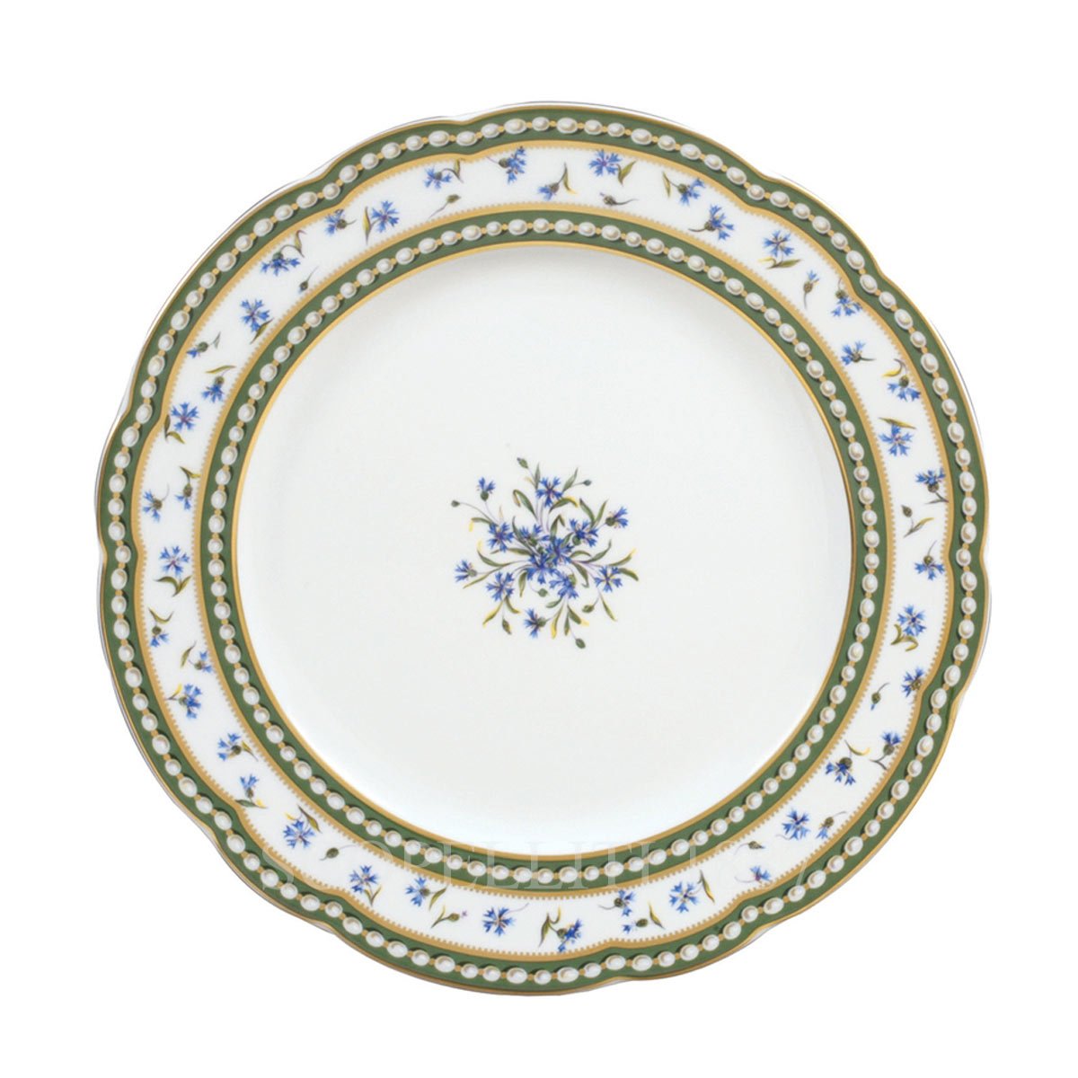 The Bernardaud Marie Antoinette Dinner Plate is part of the legendary service created for the Queen of France. Its elegant “Comte d’Artois” shape is adorned with the iconic pearl and cornflower decoration, a motif symbolizing both simplicity and refinement. The cornflower—Marie-Antoinette’s favorite wild flower and the color of her eyes—is delicately framed between rows of pearls and highlighted with fine gold accents. Traditionally used to present the main course, this porcelain dinner plate is often placed atop the charger plate for a refined table setting. Beyond its function at the table, it also serves beautifully as a decorative piece, whether displayed on a wall, bookshelf, or mantel. With only two surviving pieces from the original service preserved at the Versailles château and the Louvre Museum, this dinner plate evokes the luxury and artistry of 18th-century French porcelain.