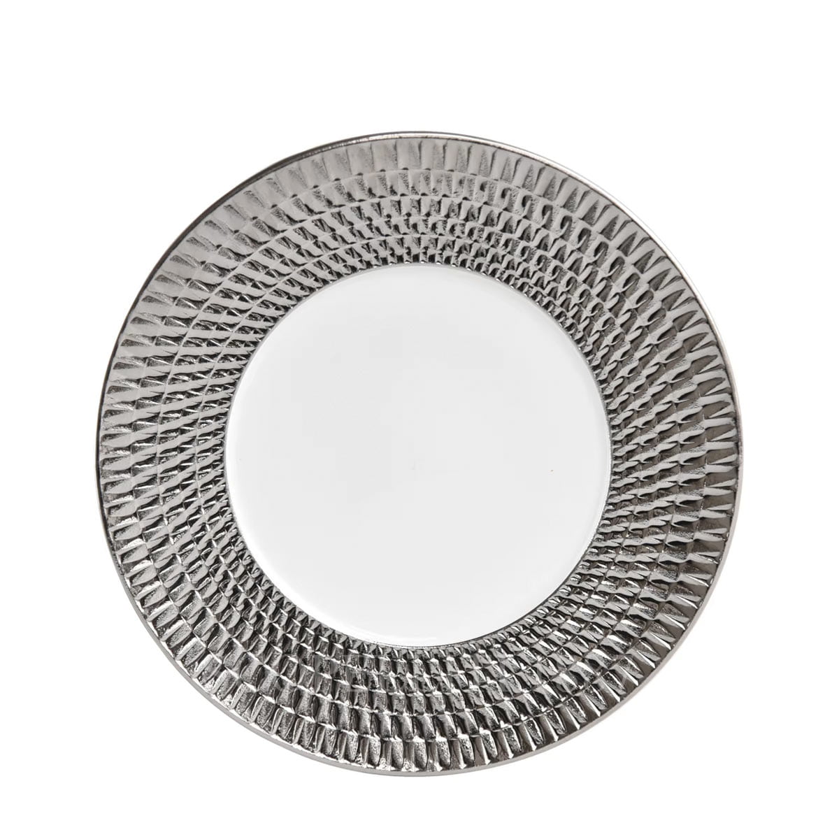 The Bernardaud Twist Platinum Salad Plate is a refined piece of French craftsmanship, created in fine Limoges porcelain with elegant platinum detailing. Its versatile size makes it ideal for serving salads, appetizers, desserts, or cheeses, while its exquisite design enhances both everyday dining and special occasions. The Twist Platinum collection harmoniously merges diverse inspirations: the light effects of Japanese rice paper screens, the precision of origami folds, mid-century woven furniture, and the innovation of 3D graphics. The result is a geometric pattern full of movement, elevated by platinum accents that add a timeless touch of sophistication. Produced in the traditional Bernardaud porcelain factory, this plate reflects over 160 years of expertise and artistry. A true expression of luxury French porcelain, it enriches any table setting with understated elegance.