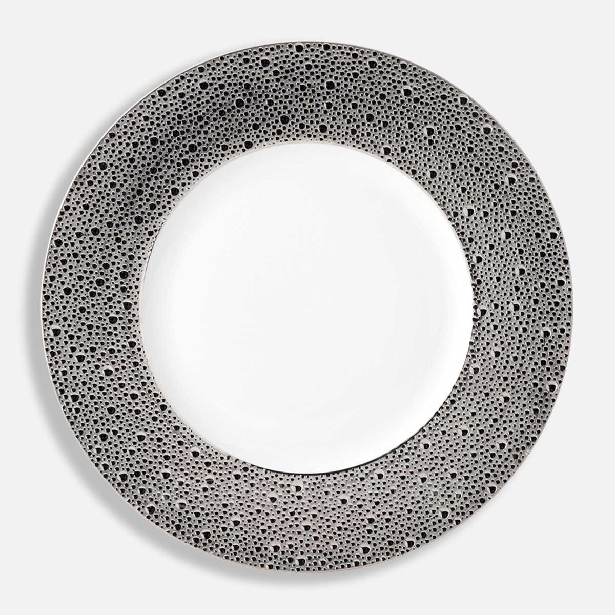 Bernardaud Service Plate Ecume Platinum will add a touch of sophisticated elegance to your table. Subtle effects within the material, masterful glazing work, the hollow engraving of Ecume makes for a contemporary and poetic collection that produces a highly elegant and modern table setting. The Bernardaud Ecume Platinum table service has a finely filigreed structure, which brings to mind the waves of the sea. A precious platinum finish on the wide edge of the plates and on the external surfaces of the bowls, tea/coffee pots, sugar bowl and milk jug makes these exclusive tableware particularly eye-catching.