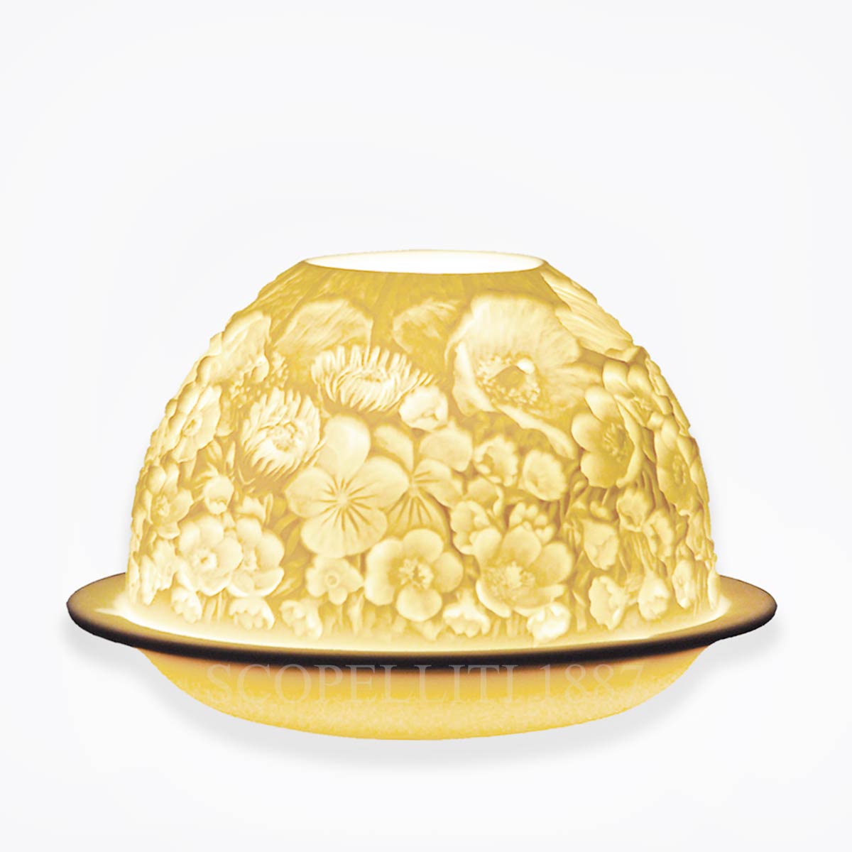 Votivelight in bisque porcelain with Spring blossoms engraved motif. Gift box included. Dimensions: Height 7.5 cm – Diameter 11.3 cm Burning time: up to 6 hours A lithophane (French: lithophanie) is an etched or molded artwork in very thin translucent porcelain that can only be seen clearly when back lit with a light source. The Bernardaud Votivelight was made with this traditional engraving technique on a fine bisque (non-glazed) porcelain that was invented in Limoges in 1828. Bernardaud still use it to craft beautiful votives that come in a wide variety of decor. The glow of the candle shines through the raised and carved surface of the votive, contrasting light against shadow and thus revealing its richly detailed design.