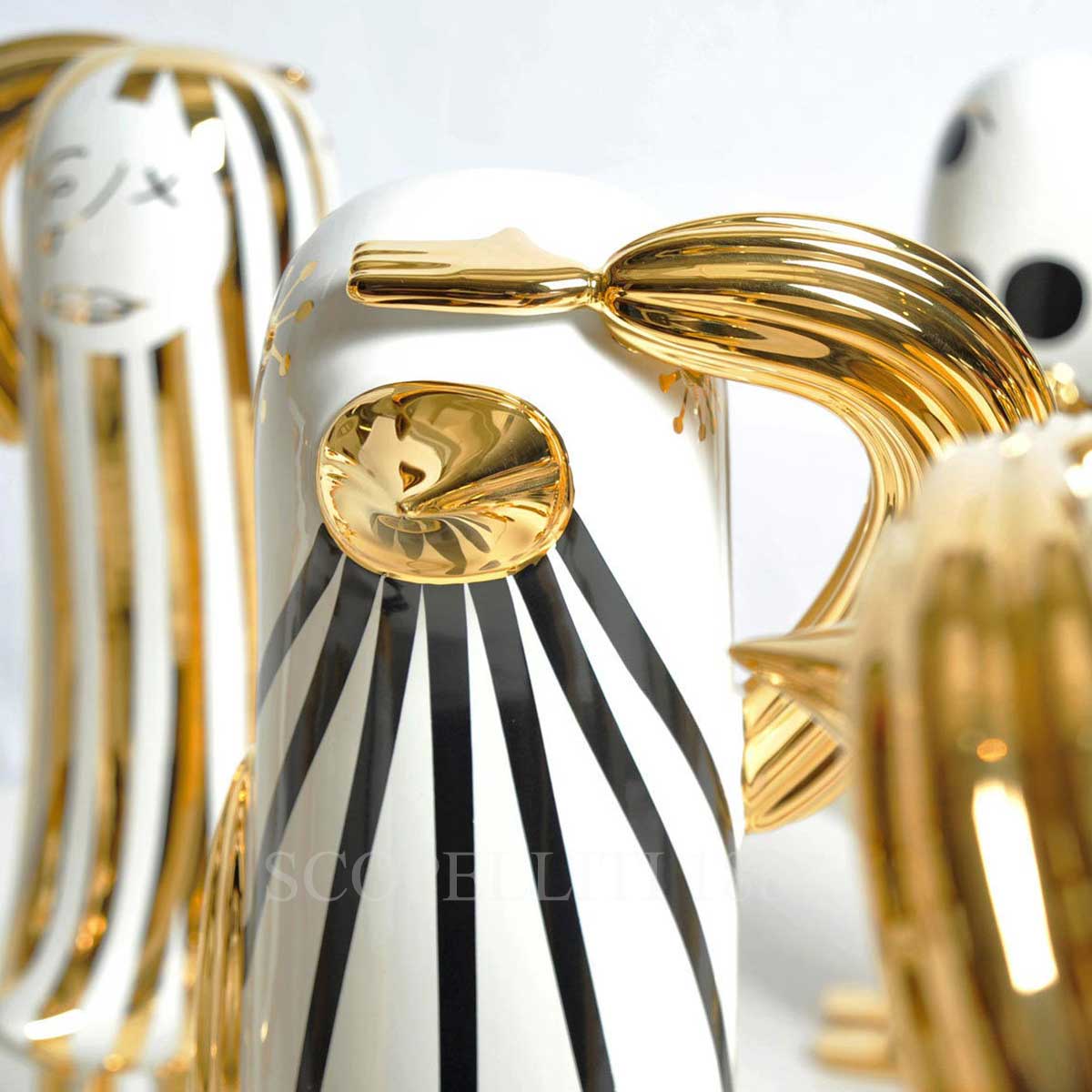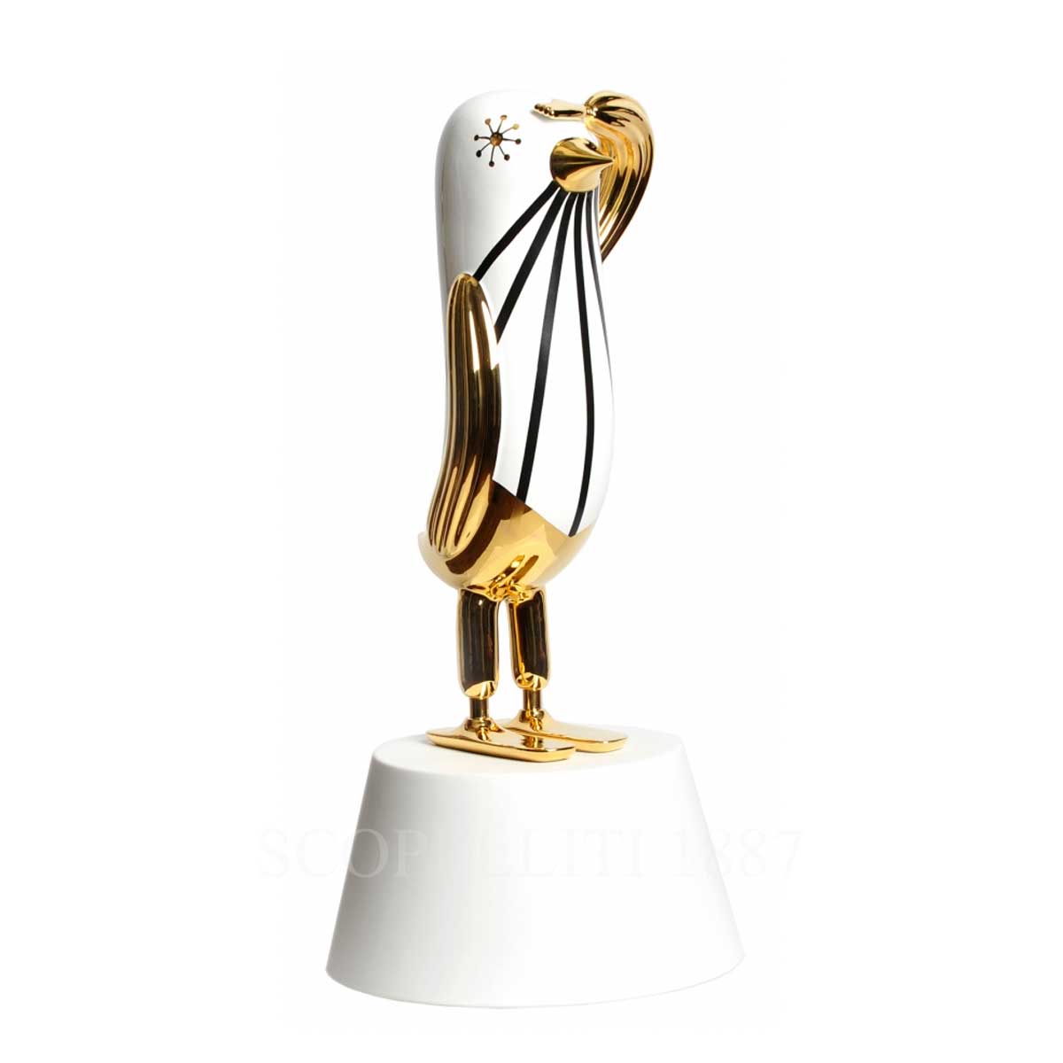Bosa Hopebird D4 by Jaime Hayon Limited Edition in ceramic is designed in glossy white glaze with lustrous gold precious details. Designed by famous artist and designer Jaime Hayon special for Bosa. Gift box included. Limited edition 99 pieces for decoration. Size: Ø 57 x H 130 cm Base: Ø 57 x H 32 cm Bring positivity to your space with this Hopebird sculpture, designed by Jamie Hayon for Bosa. Standing proudly with its sight set on the horizon, this ceramic piece features a striped panel for a patterned impression. Hopebird stands proud and tall as it gazes towards the horizon and invites us to reflect on the importance of looking positively at what the future will bring. This tabletop sculpture is made out of fine ceramic and hand-painted with 24kt gold.