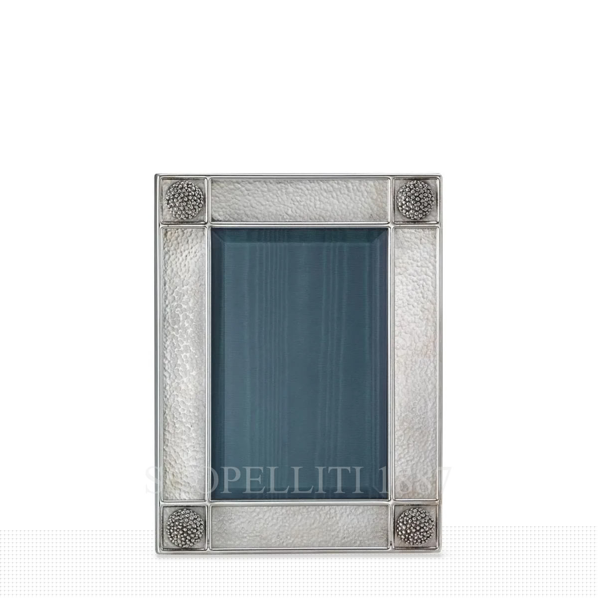 Caviar Frame. Decorative objects in silver. Large Band Hammered Frame. Size M. Dimensions: Int. 10 x 15 cm The Caviar Collection by Buccellati re-interprets a famous design of the House, dating back to the ‘30s. Since then, the motif composed of small caviar beads has always been used by Buccellati on many of its jewels and silver pieces, and now it is revamped in a collection gathering silver pieces for the table and house decoration. The beauty of the design, the extraordinary quality of craftsmanship and the individual character of each piece are the hallmarks of Buccellati silver. No matter how large or small the piece, handcrafted Buccellati silver is an art form that is meant to be used, enjoyed and treasured for a lifetime.
