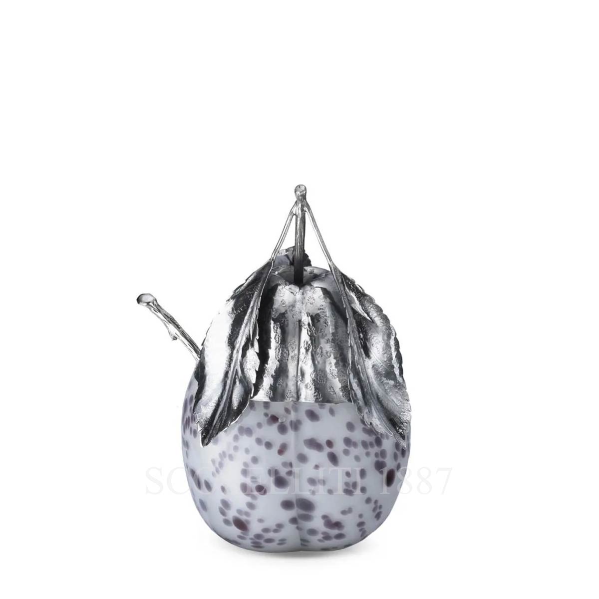 Jar in silver and Murano glass. Spotted Plum Jam Jar. Dimensions: diameter 10 cm – height 14.5 cm The Murano Collection witnesses the close link between Buccellati and Venice, all based on intellectual and historic affinities, sharing of elegance and timeless beauty. The combination between the light and amazing Murano glasses and the silversmithing art of Buccellati shows the perfect union of traditions and know-how experiences which characterize these creative arts, both standing out for the top quality of materials and the prestige of the workmanship.