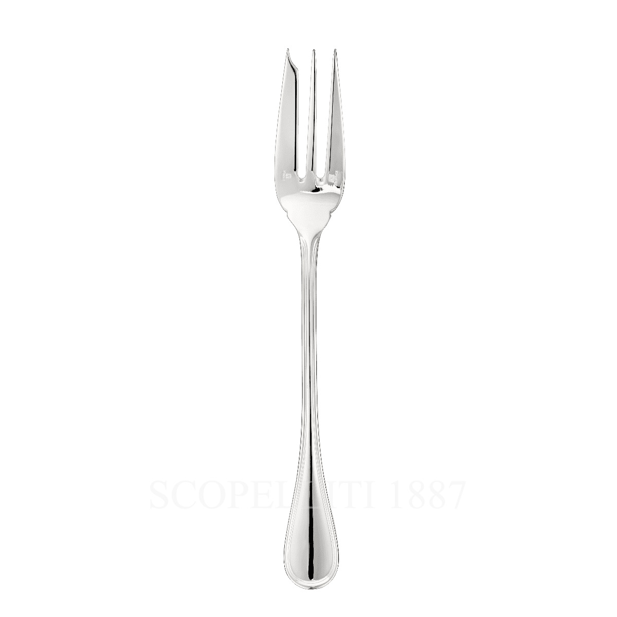 The Christofle Albi Serving Fork Stainless Steel is a refined and durable utensil, perfect for serving meats, vegetables, and other side dishes. Crafted from high-quality stainless steel, it is designed to match the size and style of the collection’s platters, ensuring it stays securely in place and doesn’t slip into your food. Part of the timeless Albi collection, this serving fork features clean, straight lines inspired by the architecture of the Albi Cathedral in southwestern France. Introduced in 1968, the Albi pattern is known for its classic simplicity, making it a sophisticated choice for any dining. This Christofle Serving Fork is well-balanced and easy to handle. Its highly polished surface and subtle details, such as the generous moulding and fine inner border on the handle, add an elegant touch to any table setting. A true classic, the Christofle Albi Serving Fork Stainless Steel combines function and timeless design, making it a valuable addition to your dining collection.