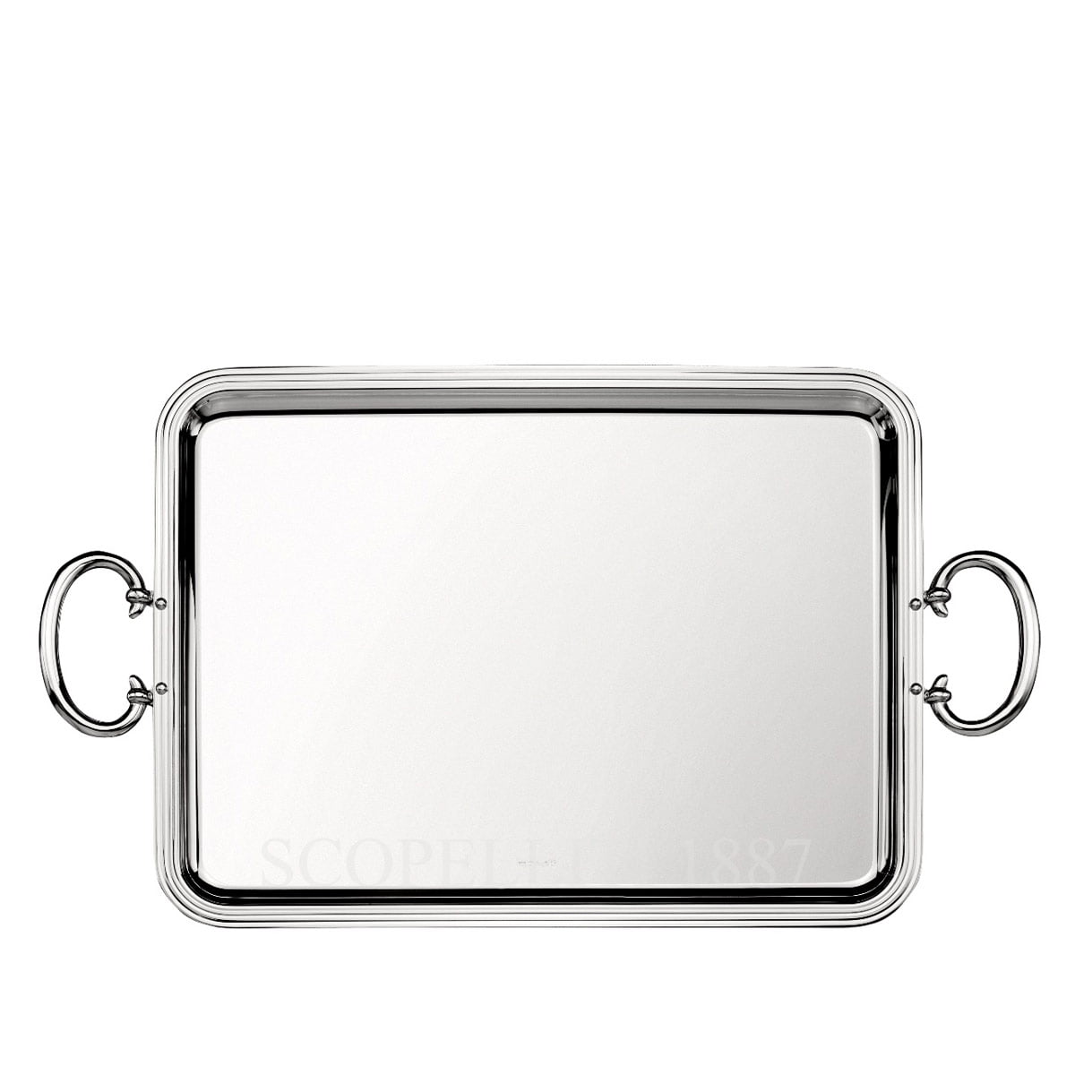 The Christofle Albi Serving Tray Large with Handles is a rectangular tray designed for practical elegance, offering ample surface space for serving beverages, glassware or organizing tabletop accessories. Part of the Albi collection, the tray features clean, straight lines inspired by the classical architecture of the Albi Cathedral. The integrated side handles provide secure grip and easy handling, even when carrying heavier items. Its mirror-polished silver-plated surface adds a refined touch, suitable for everyday use. The Christofle Albi Serving Tray Large is crafted with high-quality Christofle craftsmanship, ensuring durability and a timeless aesthetic. Presented in a Christofle gift box, it makes an excellent choice for weddings, anniversaries, or corporate gifts.