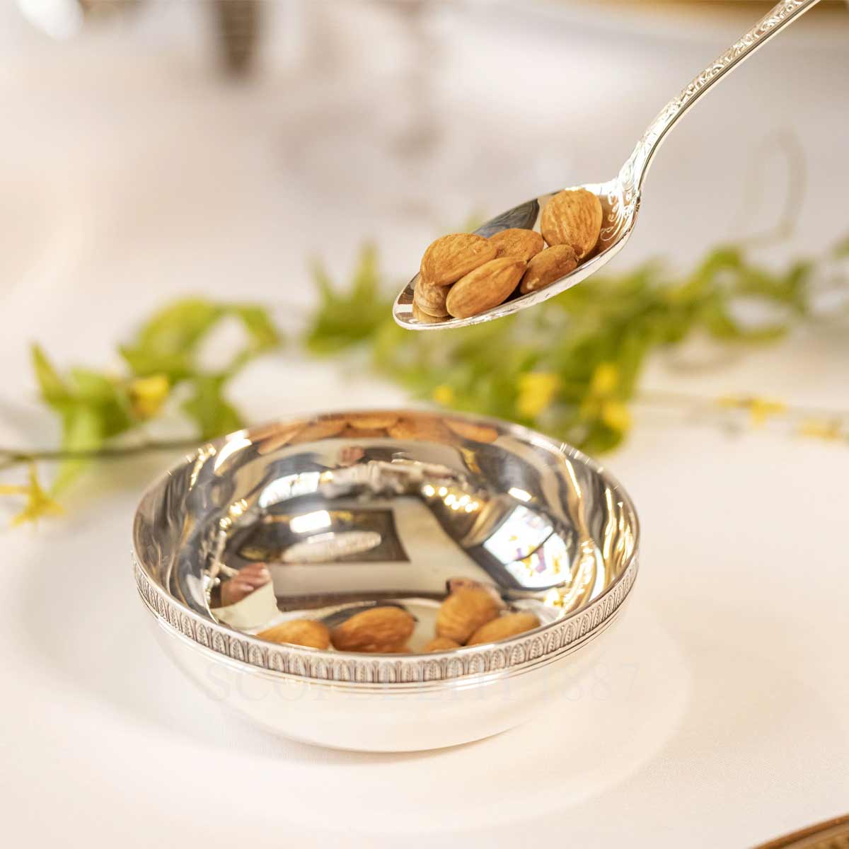 Perfect for serving nuts, sweets, or small delicacies, this small bowl elevates everyday dining into a luxurious experience. Its classic design also makes it suitable as a decorative accessory for a refined table arrangement, blending historical elegance with modern functionality. Ideal for collectors of fine French silverware, or as a thoughtful gift for weddings, anniversaries, and special occasions.