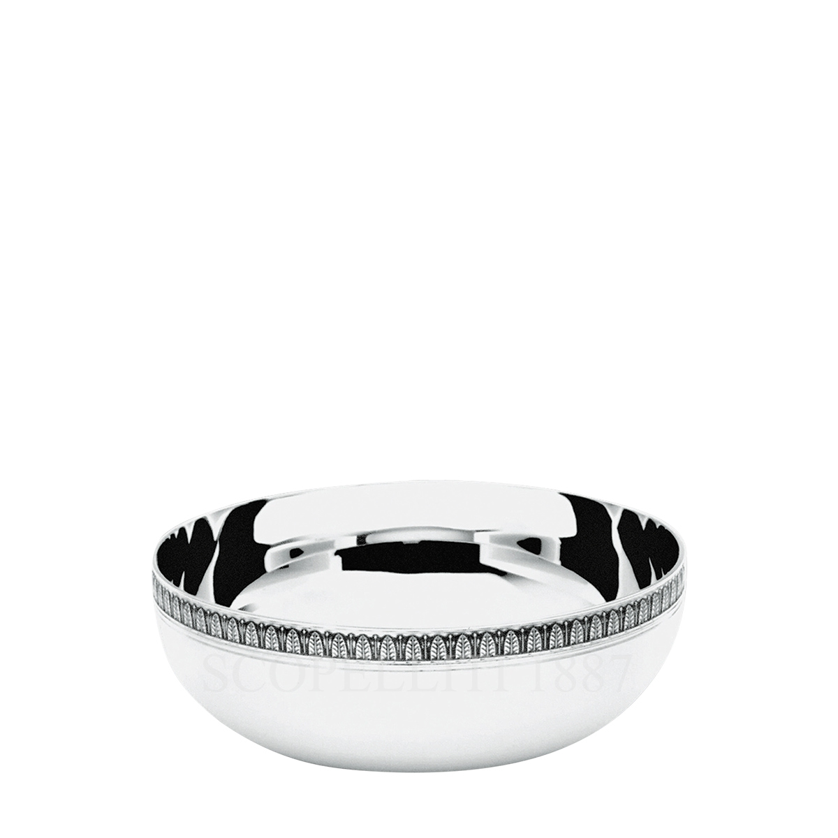 The Christofle Malmaison Small Bowl Silver Plated is a refined addition to any elegant table setting. Crafted in silver-plated metal, it features the historic Malmaison pattern, celebrated for its Empire-style frieze of palm and lotus leaves, symmetrically arranged to evoke classical sophistication. Inspired by the famed Chateau de la Malmaison, a Parisian residence of Napoleon Bonaparte and Empress Josephine, this bowl embodies the heritage and timeless elegance of Christofle’s tableware craftsmanship.