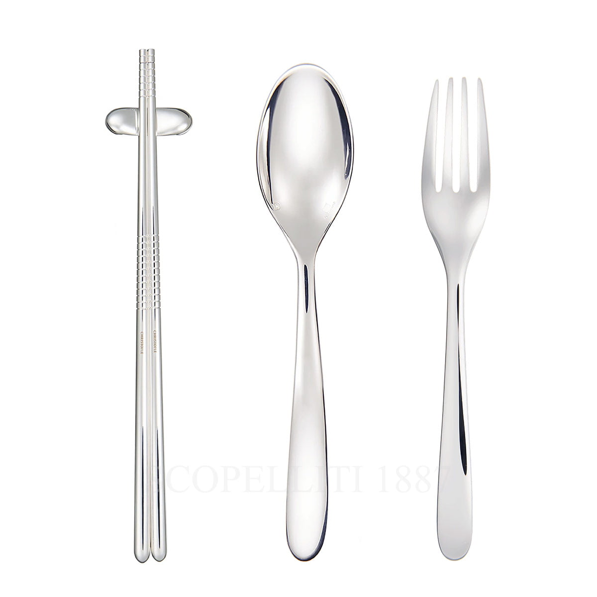 The Christofle Mood Asia Cutlery Set for 6 persons combines elegant silverplated chopsticks, rests, broth spoons, and dessert forks, designed to enhance your Asian dining experience with refined craftsmanship. The Christofle Mood Asia Cutlery Set, perfect for sushi and designed for 6 people, beautifully blends silverplated elegance with the artistry of Asian cuisine. Crafted to elevate your dining experience, this set is presented in a stylish gift box with a practical Storage Capsule. A perfect gift for those who appreciate fine dining, Christofle’s craftsmanship celebrates the elegance of Asian culinary traditions.