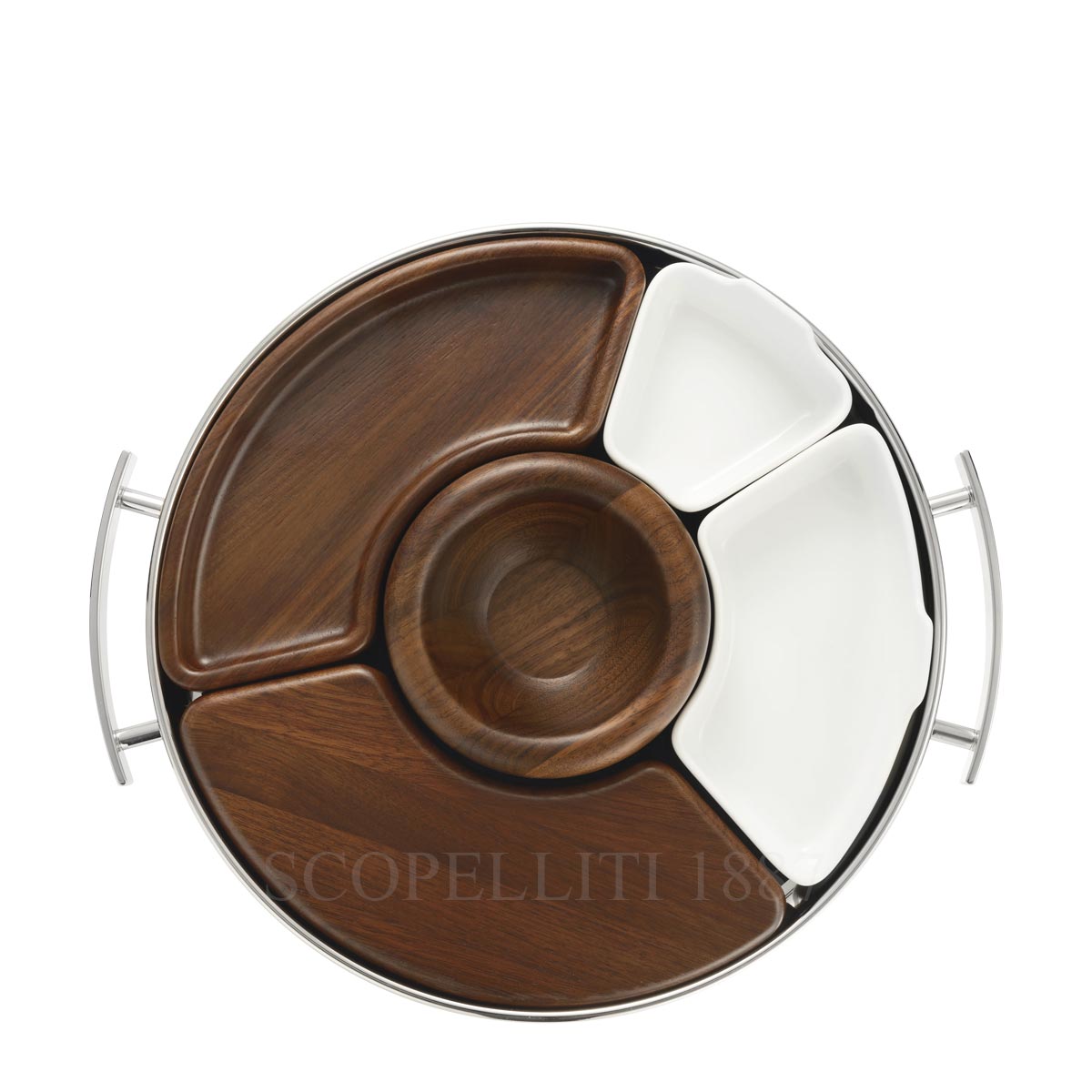 The Christofle Mood Coffee Tray is the latest addition to the Mood collection, designed to bring elegance, functionality, and conviviality to your coffee moments. This sophisticated tray holds a set of 6 Mood Coffee espresso spoons (not included) at its center and features stylish wood and porcelain containers, perfect for serving savory or sweet treats. Its compact size and removable containers ensure easy use and effortless cleaning, while its sleek design enhances any table setting. More than just for coffee lovers, the Christofle Mood Coffee Tray is versatile—ideal for serving sweet delicacies, small bites, aperitifs, or toppings. With the capacity to transport up to six espresso cups, it’s the perfect addition to any gathering. For a complete experience, pair Christofle Mood Coffee Tray with a set of two MOOD espresso cups in white porcelain, specifically designed to complement the MOOD Coffee tray. Choose between two luxurious versions: