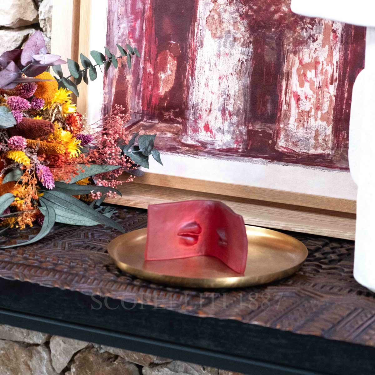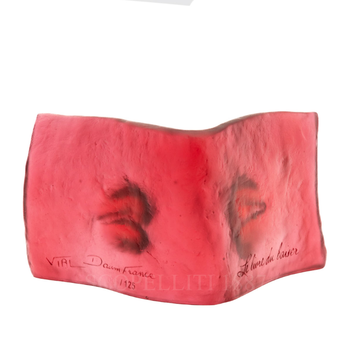 Limited Edition of only 125 Sculptor Dominique Vial presents a poetic artwork in collaboration with Maison Daum “Le livre du baiser”, an open book with two lips gently coming together in a loving dialogue. It is an ode to the love that is written and experienced, crystalized in a beautiful intense red. Discover this limited edition masterpiece crafted by Daum. Limited to just 125 pieces, this resplendent crystal sculpture beautifully merges the luminosity of its material with the fiery charm of vibrant red hues, evoking a timeless symbol of love and romance. The intricate details, reminiscent of an open book of kisses, intricately weave a narrative of artistic sophistication, inviting you to explore its captivating story. Experience the allure of Le Livre du Baiser and add a touch of elegance and passion to your collection.