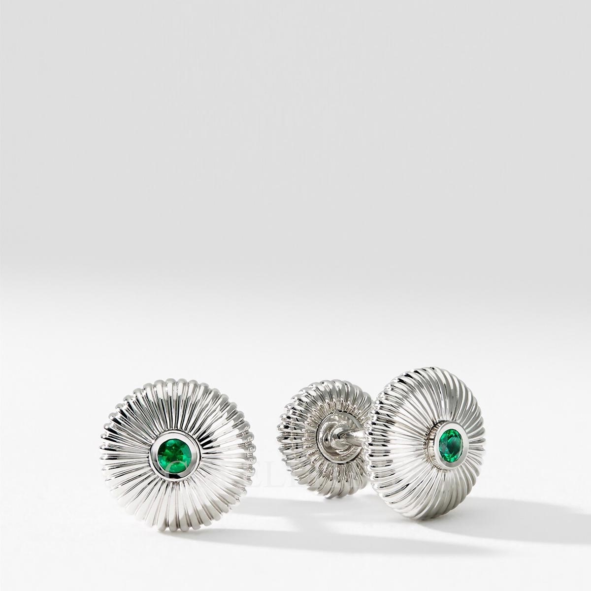 18kt white gold 2 round emeralds total weight 0.18cts 2 round emeralds total weight 0.04cts With characteristic Fabergé wit and verve, Fabergé brings its passion for craftsmanship and inventive design to the realm of cufflinks and accessories. Impeccably crafted from the finest materials and gemstones, the collection draws inspiration from the many cufflinks, dress-sets and famous cigarette cases created by Fabergé in the early 20th century. Fabergé Emerald White Gold Fluted Cufflinks feature round Zambian emeralds, set in 18 karat fluted white gold. The measurements for the front of the cufflink are 13.5mm in length, 13.5mm in height and 5.9mm in width. Gemfields work with local communities, governments and conservation NGOs to ensure every gemstone sold supports health, education and livelihood initiatives, minimises effects on our environment and protects Africa’s biodiversity.