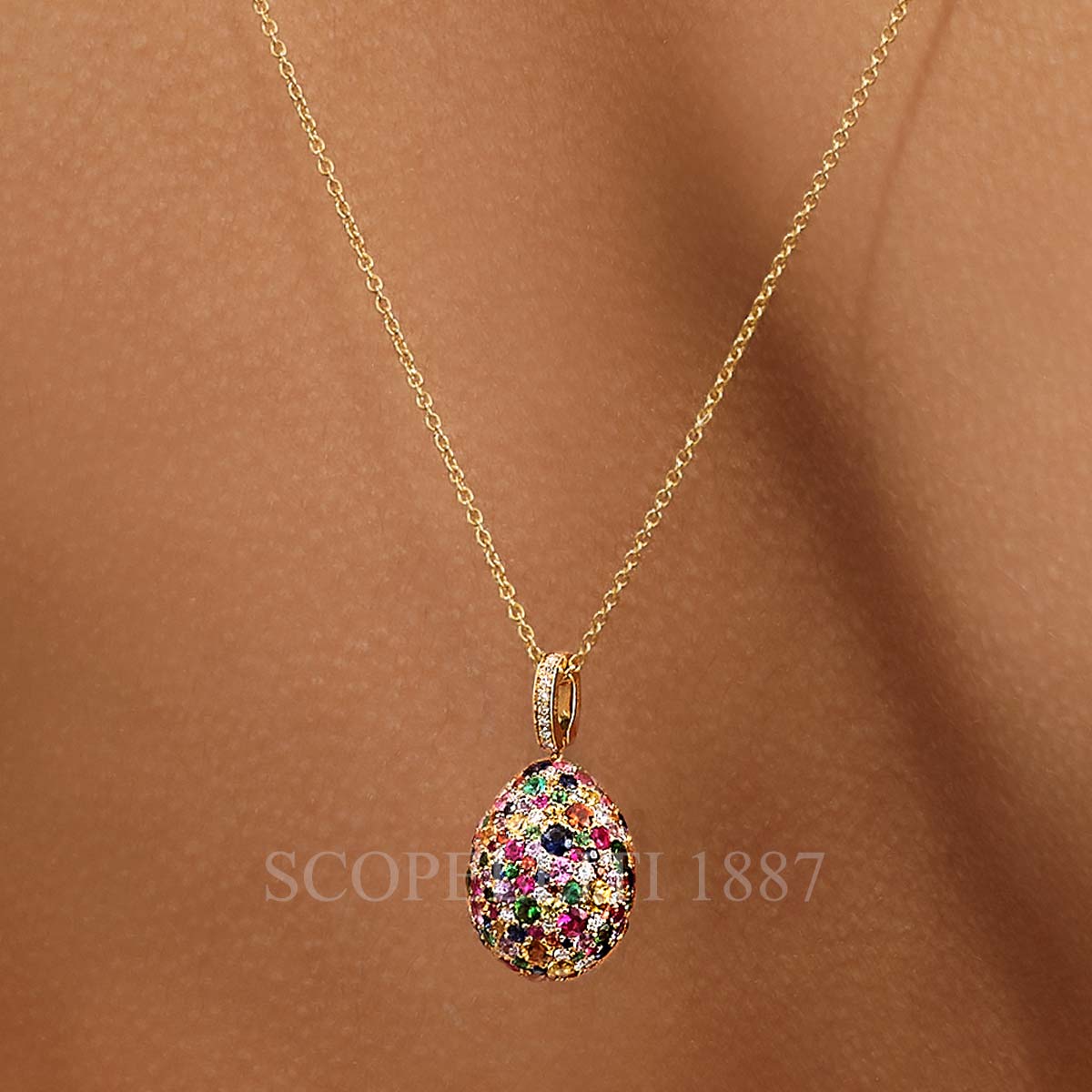Fabergé 18kt Yellow Gold Multicoloured Egg Pendant Emotion