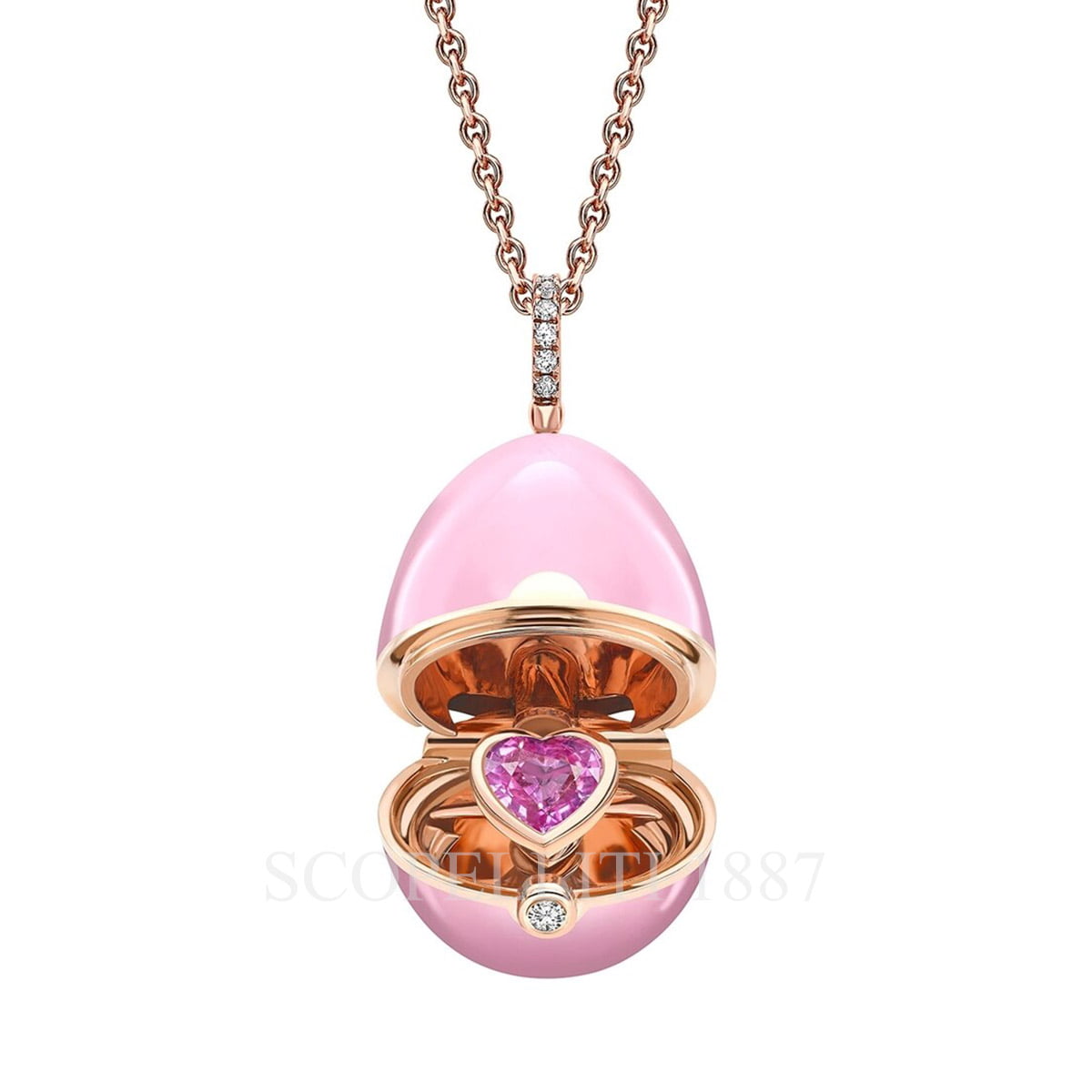 Fabergé Essence Rose Gold Diamond Pink Sapphire Heart Surprise Locket