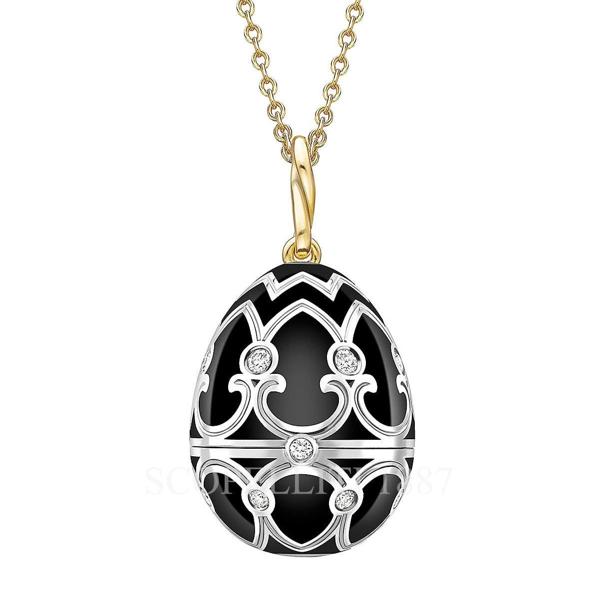 • 18kt White Gold and Black 22 mm Vitreous Enamel Locket