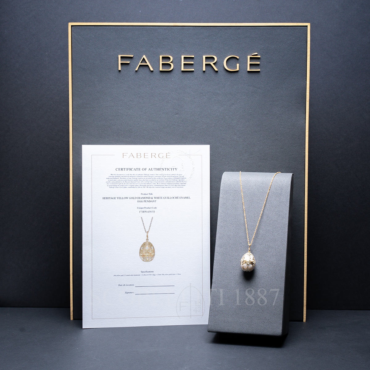 The Heritage collection draws inspiration from Fabergé’s historical masterpieces. Traditional materials and complex traditional techniques, such as the delicate art of guilloché enamelling and hand-engraving, make up the signature elements of this colourful and opulent collection. Fabergé Yellow Gold Diamond White Egg Pendant Heritage features: