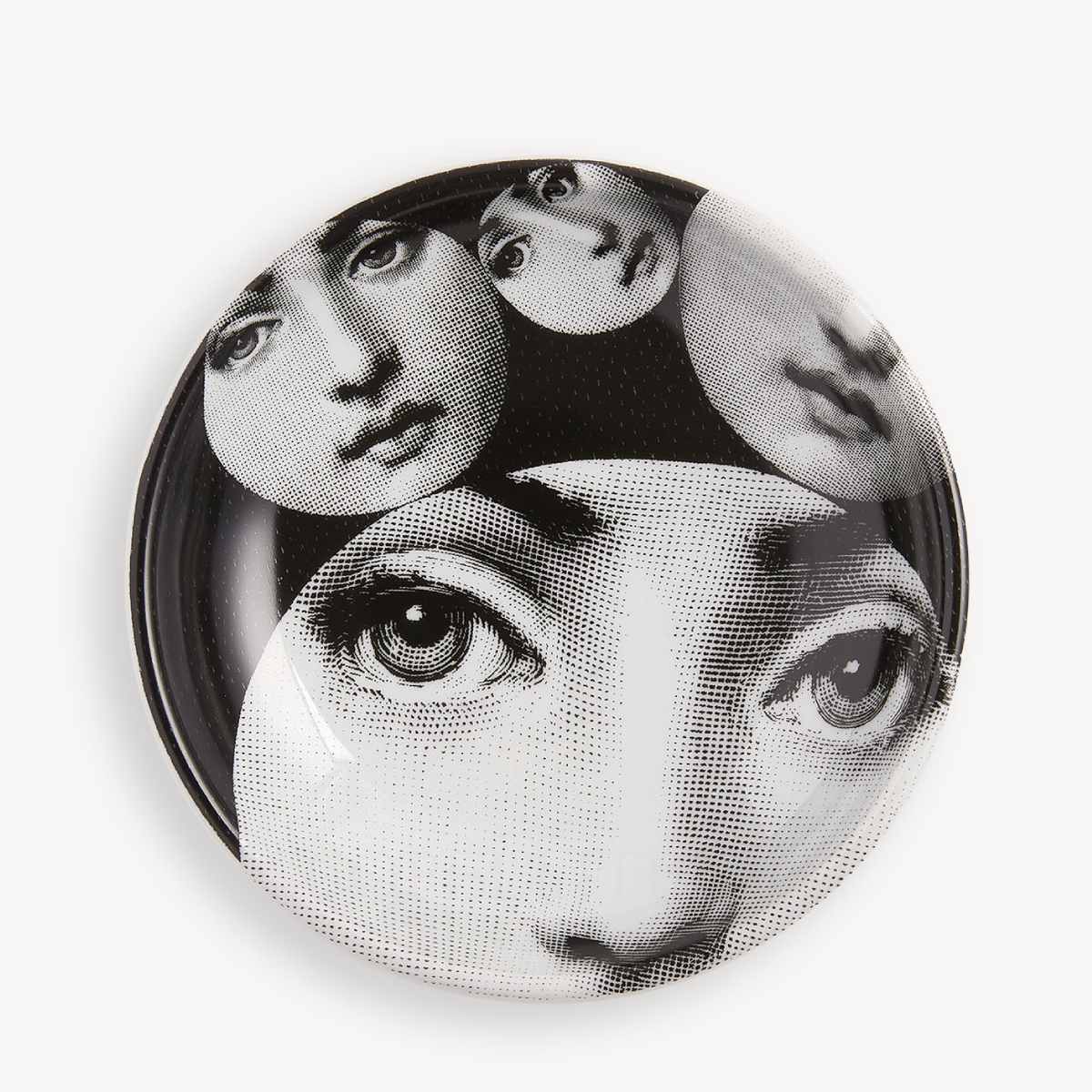The Fornasetti Ashtray Tema e Variazioni n.242 adds a distinctive touch to the renowned Tema e Variazioni collection, built around the enigmatic face of Lina Cavalieri, the enduring muse of Piero Fornasetti. Edition n.242 interprets her image through a surreal lens, extending the imaginative dialogue that defines the series.