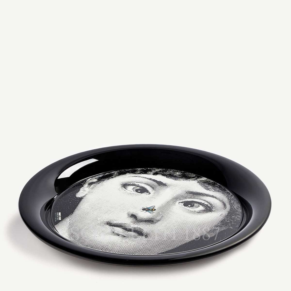 The Fornasetti Circular Tray Tema e Variazioni n.363 celebrates the iconic face of opera singer Lina Cavalieri, the enduring muse behind the Maison’s visual universe. The round format enhances the symmetry of the portrait, creating a composition that defines this piece as a true Fornasetti Tema e Variazioni tray and a refined example of luxury Italian decorative design.