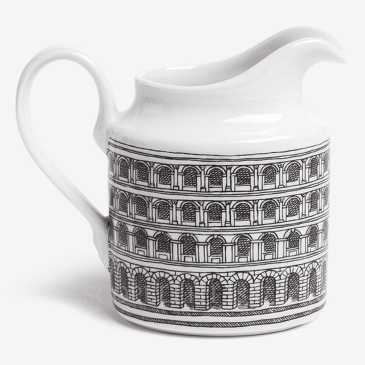 The Fornasetti Milk Jug Architettura presents the distinctive visual universe of Fornasetti through a refined porcelain accent designed for coffee and tea service. Defined by a monochrome architectural façade inspired by the iconic Architettura theme, this luxury Italian porcelain milk jug with black and white architectural print reflects a dialogue between classical proportion and contemporary interior styling.