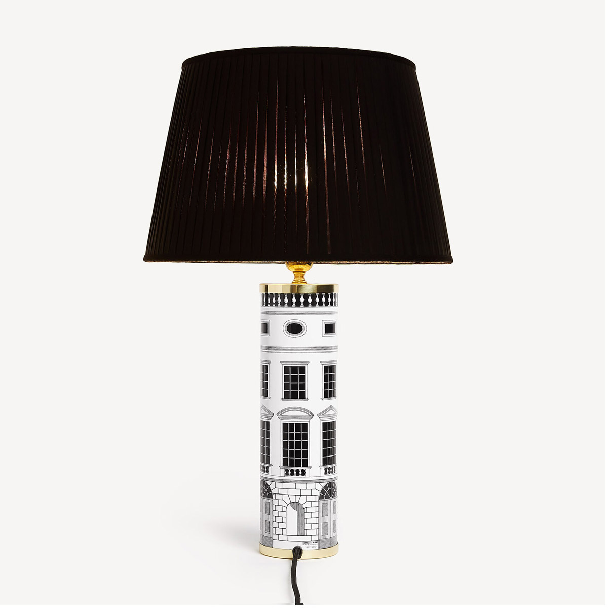 Designed for design-focused environments, this luxury Italian designer table lamp integrates into contemporary, classic, and eclectic décors. The Architettura lamp is perfect for those seeking exclusive Fornasetti home décor, premium decorative table lamps, and distinctive architectural motif lighting.