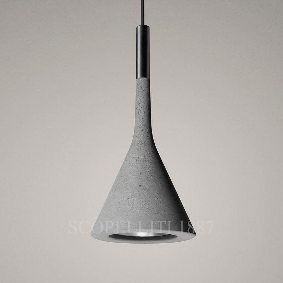 The Foscarini Aplomb Grey Suspension Lamp is a unique pendant light crafted from a specially formulated concrete that combines texture with sophistication. Designed to cast a concentrated beam of light downwards, it is ideal for modern and minimalist interiors. Add a touch of elegance and contemporary style to your space with the Foscarini Aplomb Suspension Lamp, perfect for residential and contract interiors.