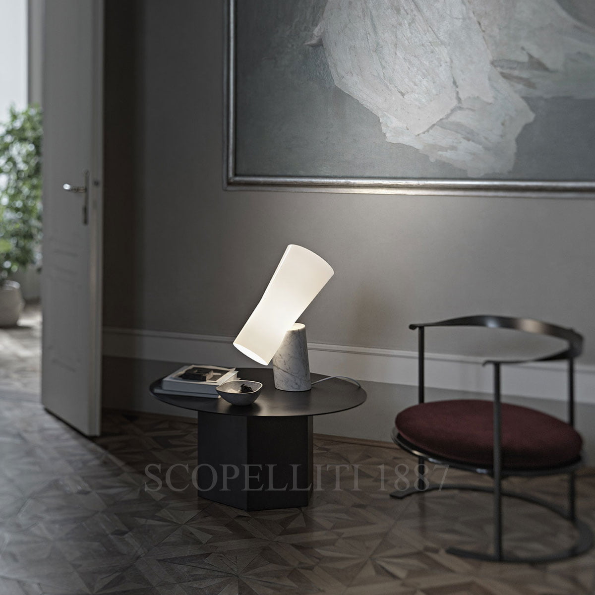 - Material: Blown glass and Carrara marble