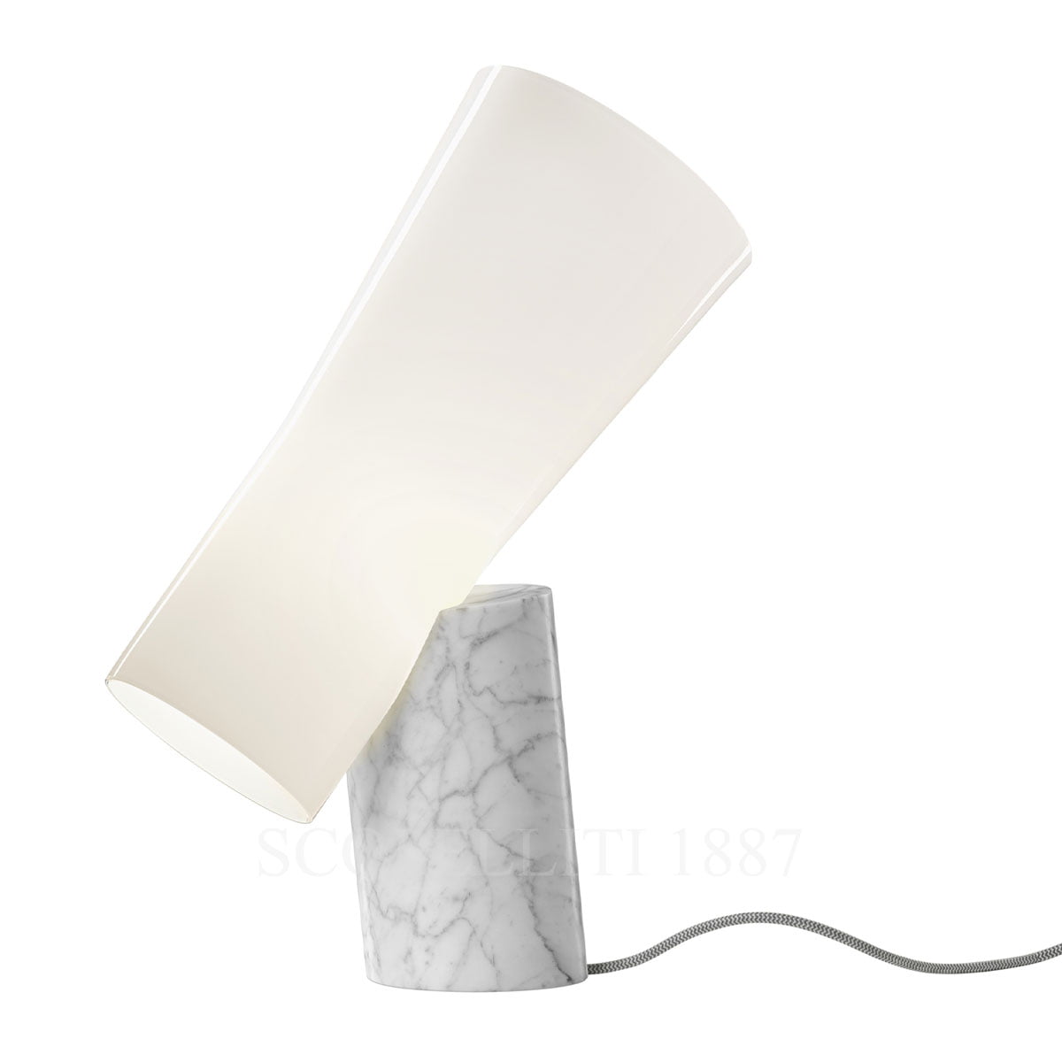The Foscarini Nile Table Lamp Marble White Carrara is an exquisite fusion of elegance and contrast. Crafted with delicate blown glass and solid Carrara marble, this contemporary table lamp embodies sophistication and modern design. Its sculptural form features a conical glass diffuser balanced on an inclined cylindrical marble base, creating a striking visual effect. Inspired by the Nile River in Egypt, the Foscarini Nile Table Lamp Marble White Carrara takes its name from this ancient waterway, evoking a sense of grandeur and refinement. Designer Rodolfo Dordoni was captivated by the resemblance between this lamp and the famous bust of Queen Nefertiti. With its sculptural form and regal presence, the Foscarini Nile Table Lamp Marble White Carrara is a stunning addition to any modern space, creating a warm and inviting ambiance. data-is-last-node=””>Ideal for living rooms, bedrooms, or offices, the Foscarini Nile Table Lamp Marble White Carrara seamlessly blends artistry with functionality, making it a must-have for design enthusiasts.