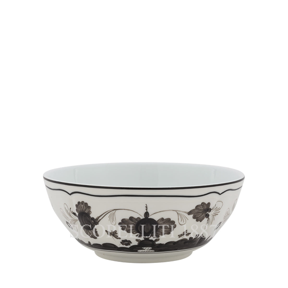 The Ginori 1735 Bowl Oriente Italiano Albus is a beautiful and functional piece, crafted with exceptional Italian artistry. Made from Albus porcelain, it features the distinctive Garofano (carnation) motif in black, adding a sophisticated touch to the bowl’s simple and elegant design. With its ample capacity, it is perfect for serving a variety of dishes while making a striking statement on any table. The Ginori 1735 Bowl Oriente Italiano Albus is a versatile addition to any table setting, perfect for serving soups, salads, or as an elegant centerpiece. It pairs beautifully with other pieces from the Oriente Italiano collection, creating a harmonious and sophisticated dining experience.
