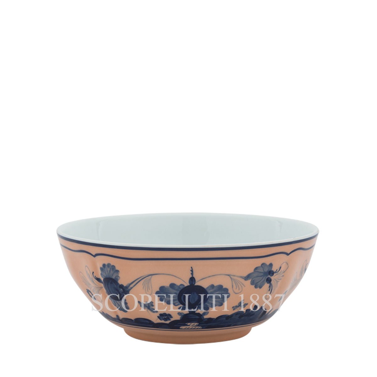 The Ginori 1735 Bowl Oriente Italiano Cipria is a stunning porcelain piece that combines beauty and functionality. The Ginori 1735 Bowl Oriente Italiano Cipri adorned with the signature blue “carnation” motif on a soft powder pink background, this bowl elevates any dining occasion with its sophisticated design. This versatile bowl is ideal for serving soups, salads, pasta, or side dishes. Its refined design makes it a perfect addition to both casual and formal table settings. It complements other pieces from the Oriente Italiano collection, adding a touch of timeless elegance to any dining experience.