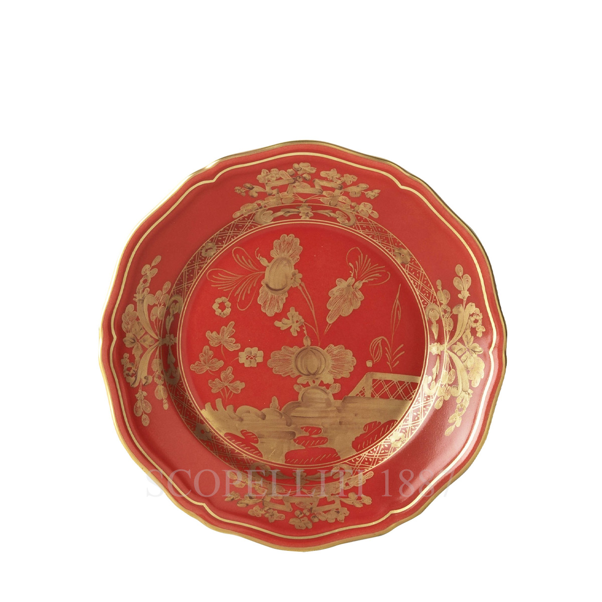 Ginori 1735 Bread Plate Oriente Italiano Rubrum – Fine Porcelain with Gold Detailing The Ginori 1735 Bread Plate Oriente Italiano Rubrum is a stunning addition to your tableware collection, featuring a rich red Rubrum pattern with elegant gold detailing. This fine porcelain bread plate, with its delicate and refined design, is perfect for serving bread, small pastries, or appetizers during special occasions. Measuring 17 cm in diameter and 2.5 cm in height, it offers a perfect balance between form and function. Weighing 248 g, it feels both substantial and delicate, showcasing Ginori’s craftsmanship. Part of the Oriente Italiano Rubrum collection, this bread plate enhances any dining experience with its luxurious appeal, ideal for those who appreciate exquisite Italian porcelain and refined details.