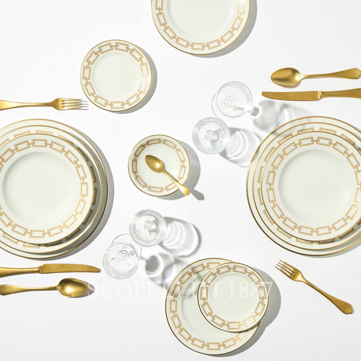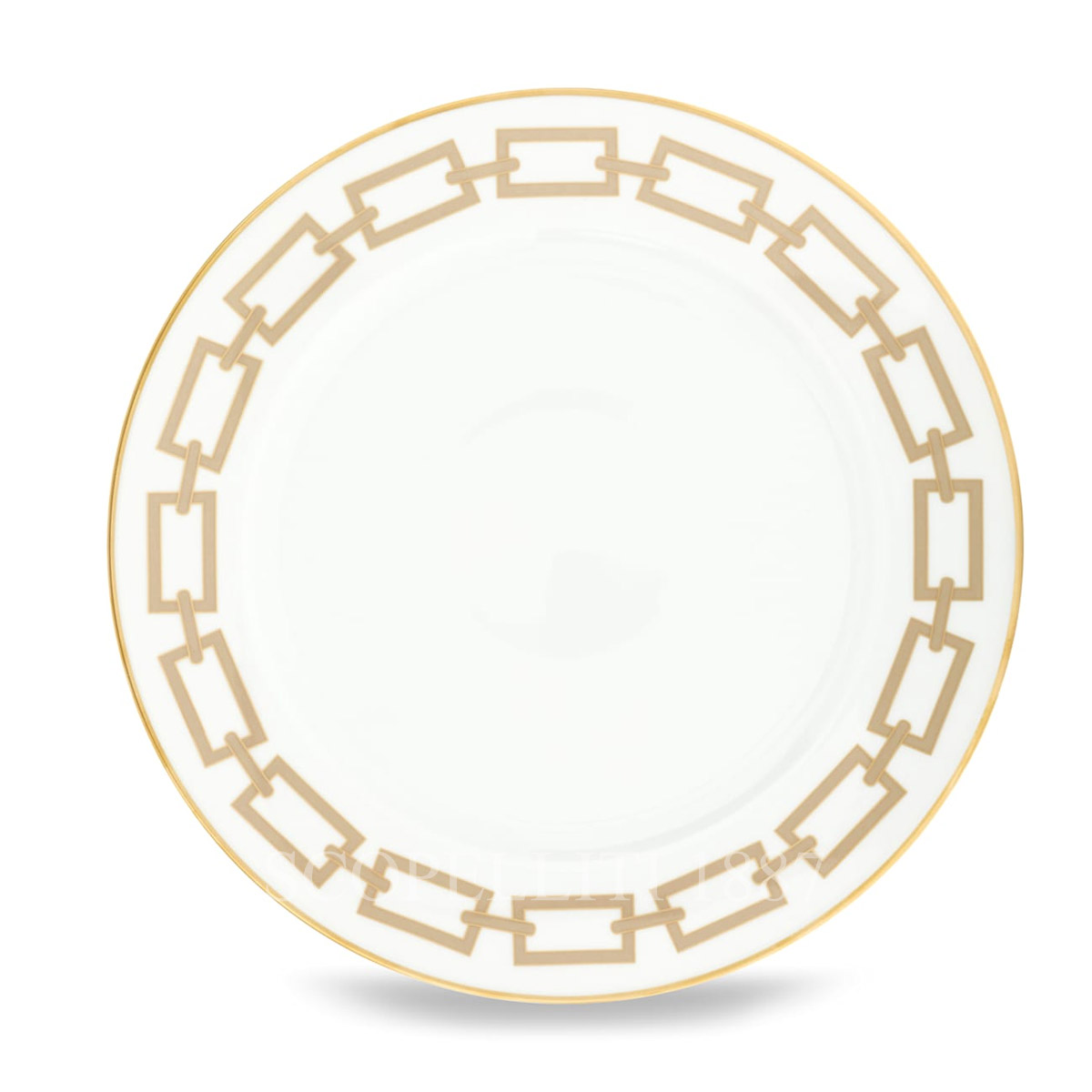 The Ginori 1735 Catene Cachemire Dinner Plate is a refined porcelain piece from the iconic collection designed by Gio Ponti. Featuring a delicate geometric motif in Cachemire beige and framed by an elegant gold-threaded rim, this dinner plate adds a touch of timeless sophistication to your table. Its generous size is perfect for main courses, combining aesthetics and practicality. Ideal for both everyday use and special occasions, it pairs seamlessly with other items from the Catene collection to create a cohesive and stylish mise en place.