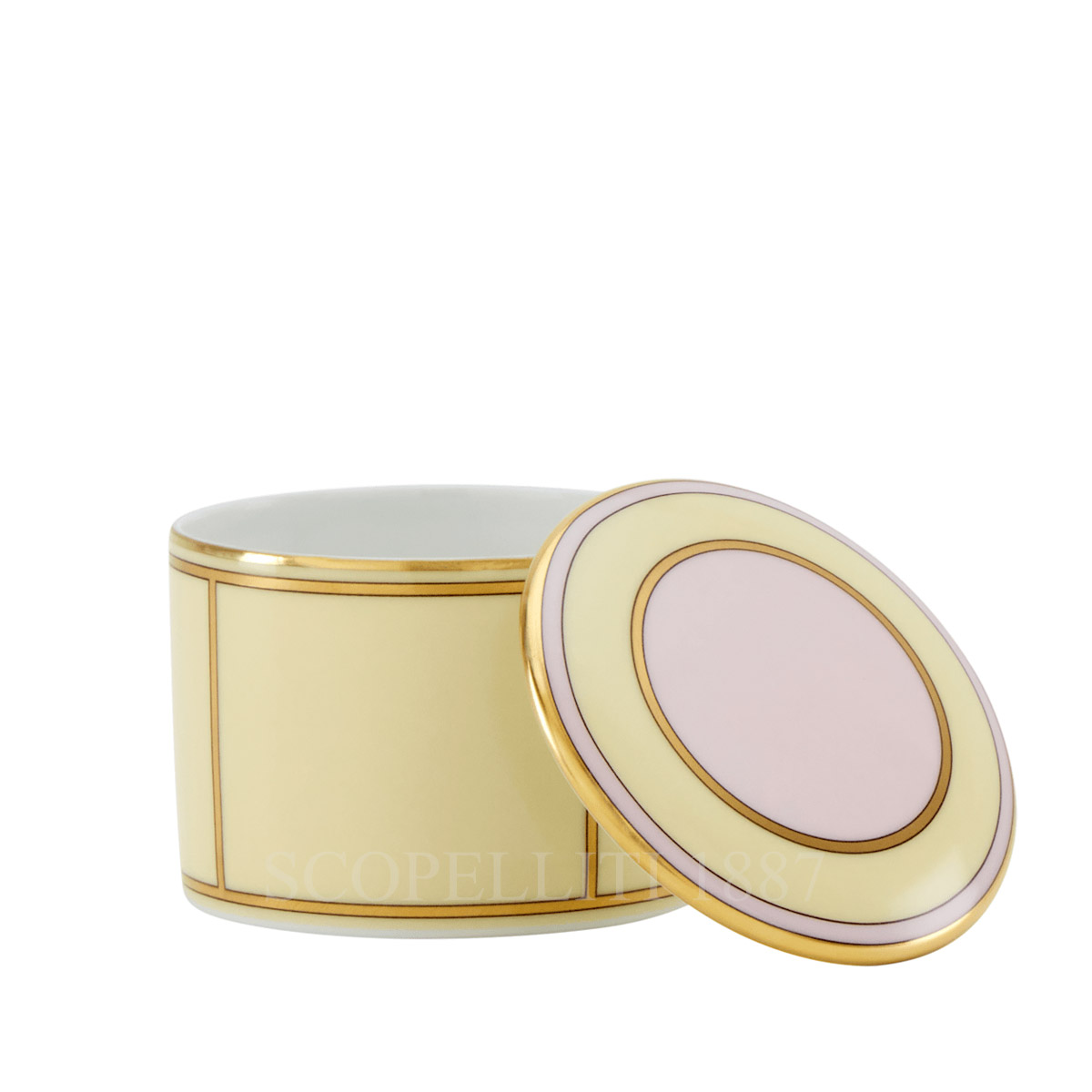 The Ginori 1735 Jewelry Box Diva Yellow is a vibrant and elegant piece, perfect for storing small treasures like rings or keepsakes. Crafted in fine porcelain and finished in a cheerful yellow glaze, it adds brightness to any space. Part of the Diva collection, this box blends retro charm with contemporary design. The Ginori 1735 Jewelry Box Diva Yellow is a unique decorative accent and a thoughtful gift, reflecting the refined artistry of the Ginori 1735 tradition.