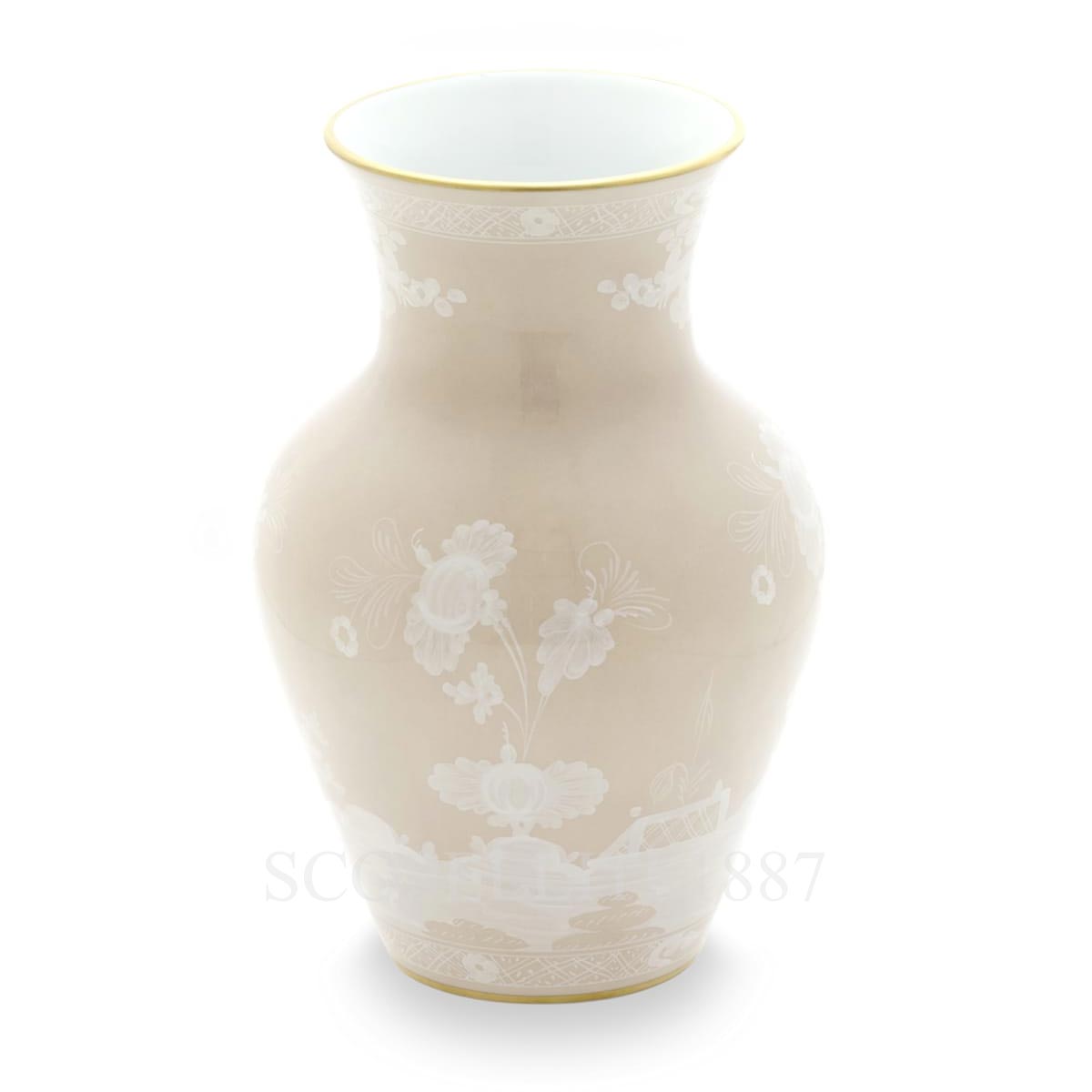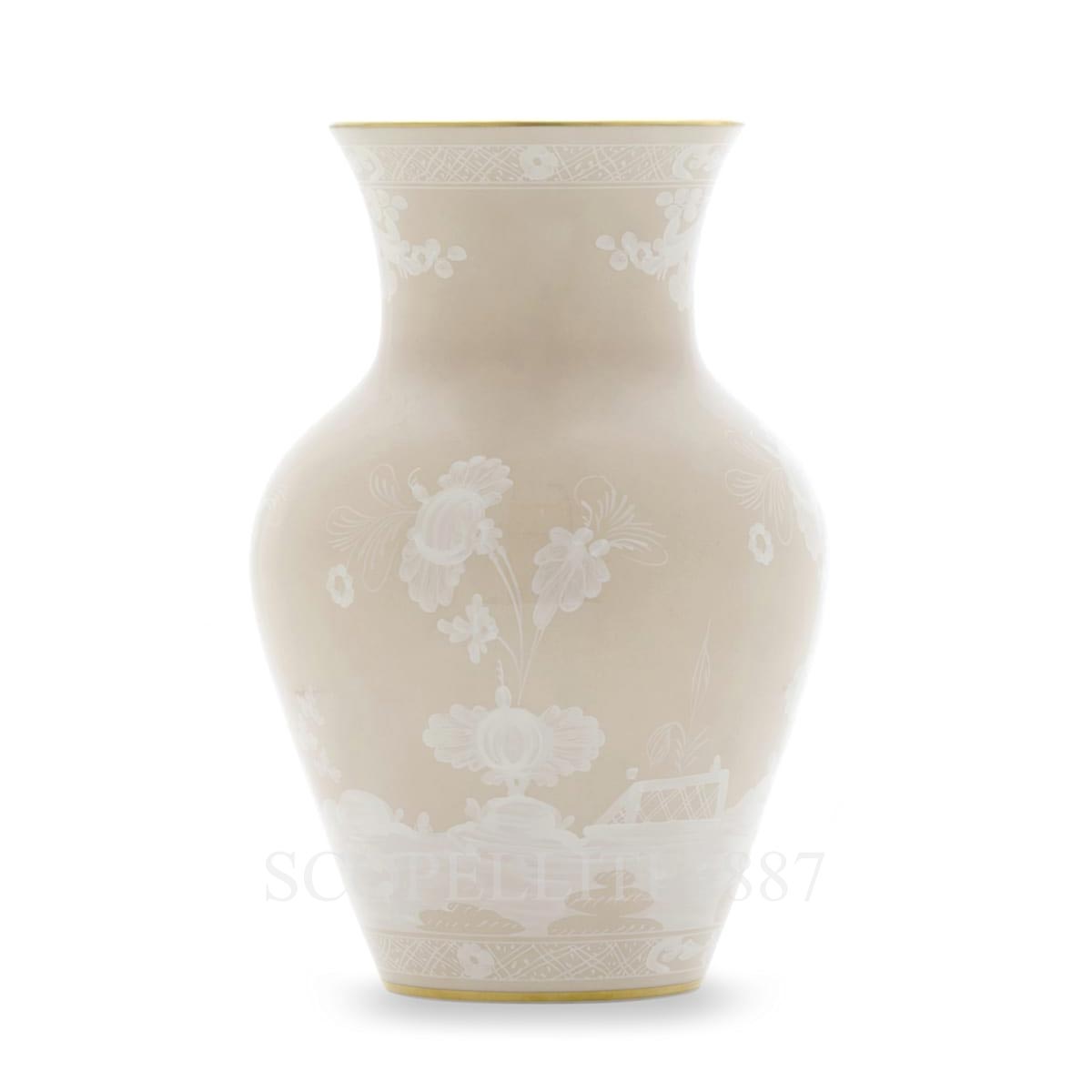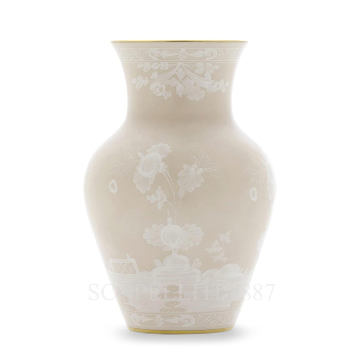 The Ginori 1735 Oriente Italiano Meringa Ming Vase is a stunning masterpiece of porcelain craftsmanship, characterized by its soft beige Meringa hue, intricate white motifs, and refined gold trim. This exquisite color palette enhances the vibrant world of the Oriente Italiano collection, creating a warm, inviting aesthetic that brings an air of sophisticated elegance to any space. Highly sought after by collectors and design enthusiasts, the Ginori 1735 Oriente Italiano Meringa Ming Vase is an ideal decorative accent for formal occasions, from elegant dinners to grand ceremonies. Its versatility shines through as it effortlessly showcases both fresh blooms and dried floral arrangements, infusing any room with a lively yet refined beauty. With its timeless appeal and cultural resonance, the Ginori 1735 Oriente Italiano Meringa Ming Vase makes for a thoughtful and memorable gift, particularly when presented in the signature Ginori 1735 luxury packaging. This vase is a perfect blend of Florentine artistry and exotic elegance, with each piece from the Oriente Italiano collection reflecting the vibrancy and heritage of Italian craftsmanship. Featuring captivating floral patterns and a rich, warm color palette, the Ginori 1735 Oriente Italiano Meringa Ming Vase transcends mere decoration—it’s a symbol of refined artistry and a celebration of Italian luxury. This vase will bring enduring charm and sophistication to any setting, making it a cherished addition to any collection.