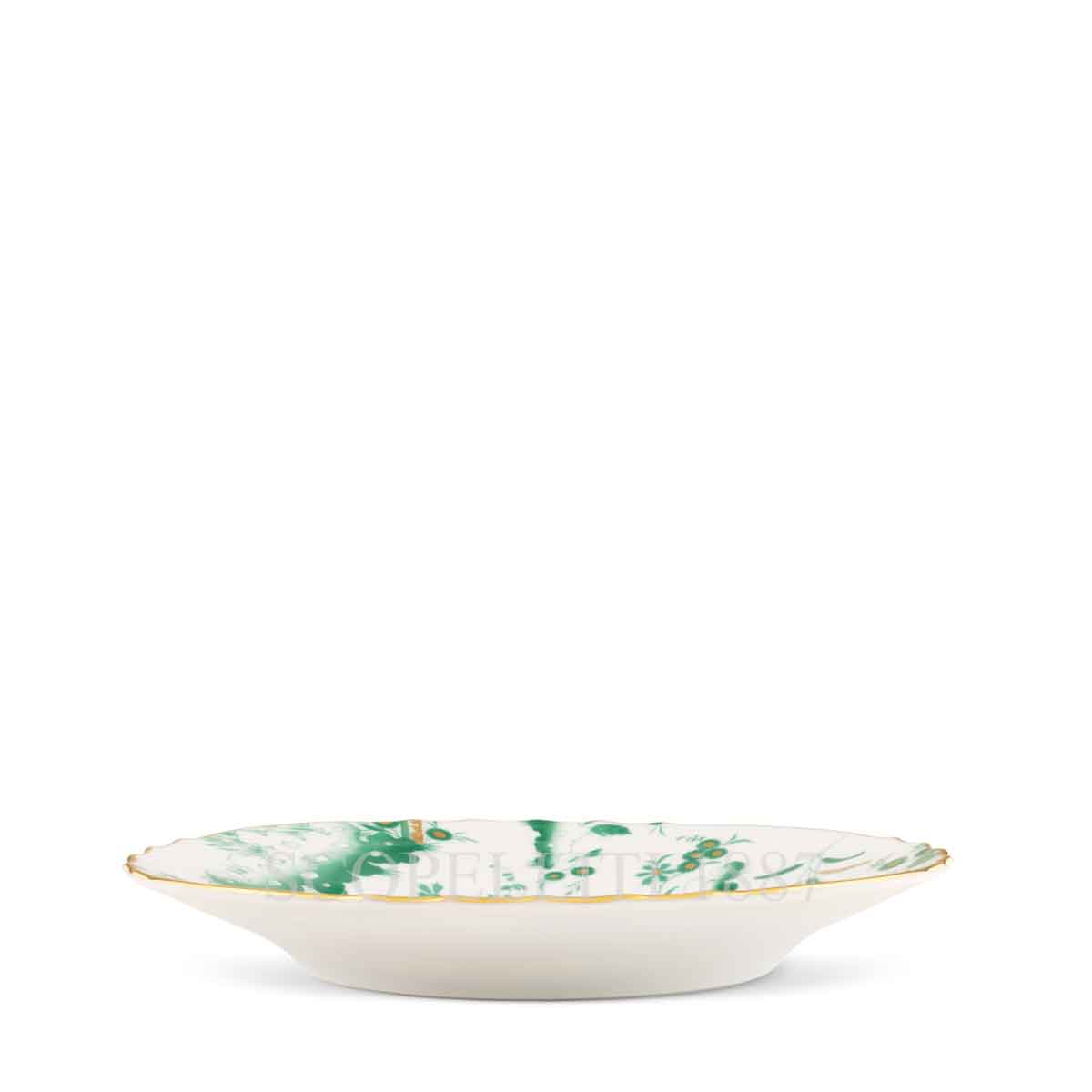 The Ginori 1735 Oro di Doccia Giada Bread Plate is a refined porcelain piece embellished with an elegant gold trim. Ideal for serving bread, small pastries, or side dishes, this plate adds a luxurious accent to any table setting. Crafted in Italy using time-honored techniques, it embodies the perfect blend of timeless craftsmanship and artistic sophistication. The Oro di Doccia collection is a tribute to Ginori’s artistic heritage. In 1740, at the beginning of the Manufactory’s history, the Florentine painter Ferdinando Campostrini designed the iconic floral hatchings featuring Ji Ondori roosters—elegant creatures symbolizing boldness in Eastern culture. His delicate sketches were transformed into exquisite decorations for the iconic Vecchio Ginori line, giving birth to the Oro di Doccia gilded porcelain collection. Modern yet steeped in tradition, this collection features tableware accented in pure gold, reflecting Ginori’s longstanding hallmark of excellence. The Oro di Doccia line is available in light blue, red, and the jade green Giada variant, allowing for a refined and versatile approach to table styling.