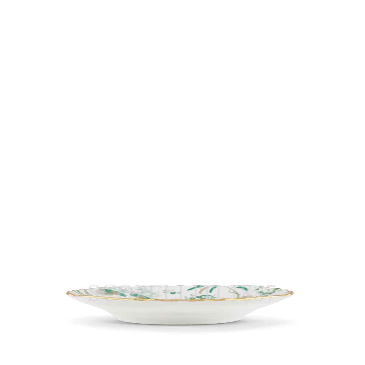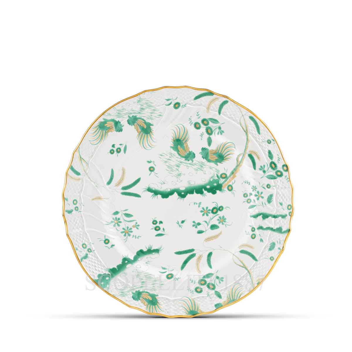 The Ginori 1735 Oro di Doccia Giada Dessert Plate is a refined porcelain piece, perfect for serving elegant desserts, pastries, or small appetizers. Featuring the distinctive Giada green color and an exquisite gold trim, this plate offers a modern yet timeless aesthetic. Its smooth round shape and sophisticated design make it a versatile addition to any table setting, enhancing both casual and formal dining experiences. Part of the Oro di Doccia collection, this plate draws inspiration from the iconic floral hatchings and Ji Ondori roosters created by Florentine artist Ferdinando Campostrini in 1740. The collection beautifully marries Ginori’s artistic legacy with modern craftsmanship, showcasing meticulous detail and superior quality. Available in Giada, light blue, and red, the Oro di Doccia collection allows you to create unique, refined table settings that reflect your personal style.