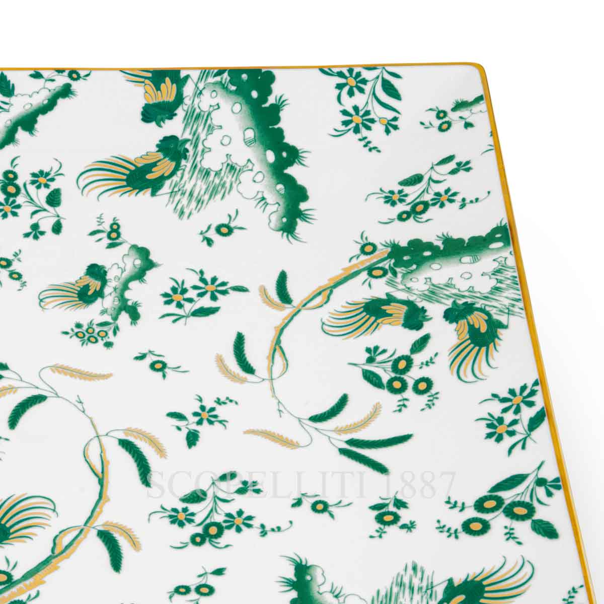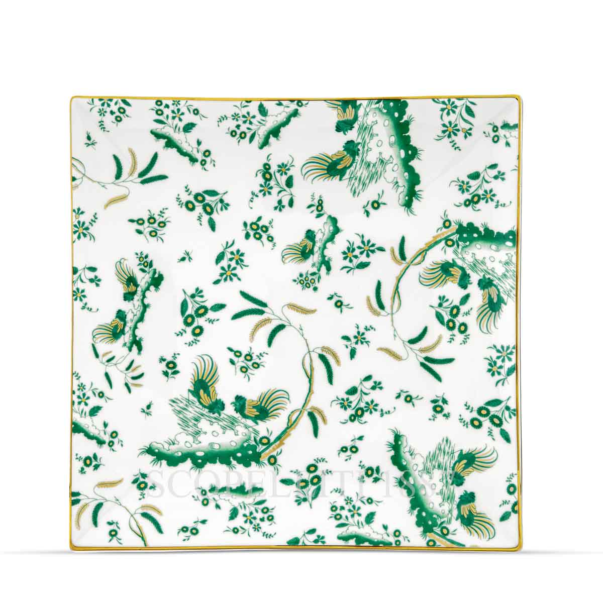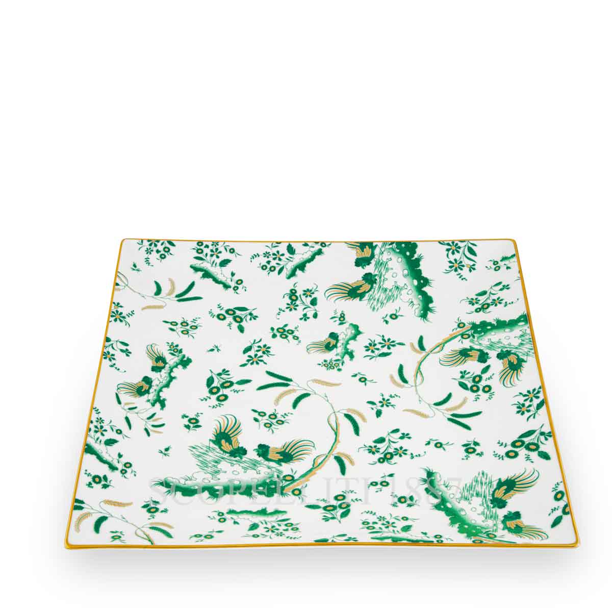 The Ginori 1735 Oro di Doccia Giada Large Square Plate is a striking porcelain piece that combines modern elegance with historical craftsmanship. Its bold square shape and delicate gold trim make it a standout addition to any table setting, perfect for showcasing main courses, gourmet dishes, or as a decorative accent. Designed and crafted in Italy, it embodies the essence of Ginori’s commitment to luxurious artistry and timeless style. The Oro di Doccia collection is a nod to Ginori’s rich artistic heritage. In 1740, Florentine artist Ferdinando Campostrini designed the iconic floral hatchings and Ji Ondori rooster motifs, which symbolize boldness in Eastern traditions. These designs were brought to life on porcelain for the renowned Vecchio Ginori line, and eventually became part of the Oro di Doccia collection, with its signature gold-edged detailing. With its stunning combination of pure gold and elegant jade Giada color, the Oro di Doccia collection is available in several shades, including light blue, red, and Giada, allowing for versatile and sophisticated table arrangements.