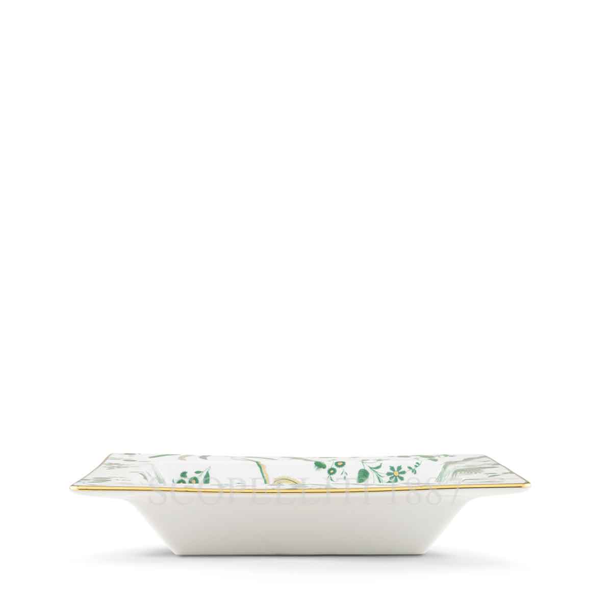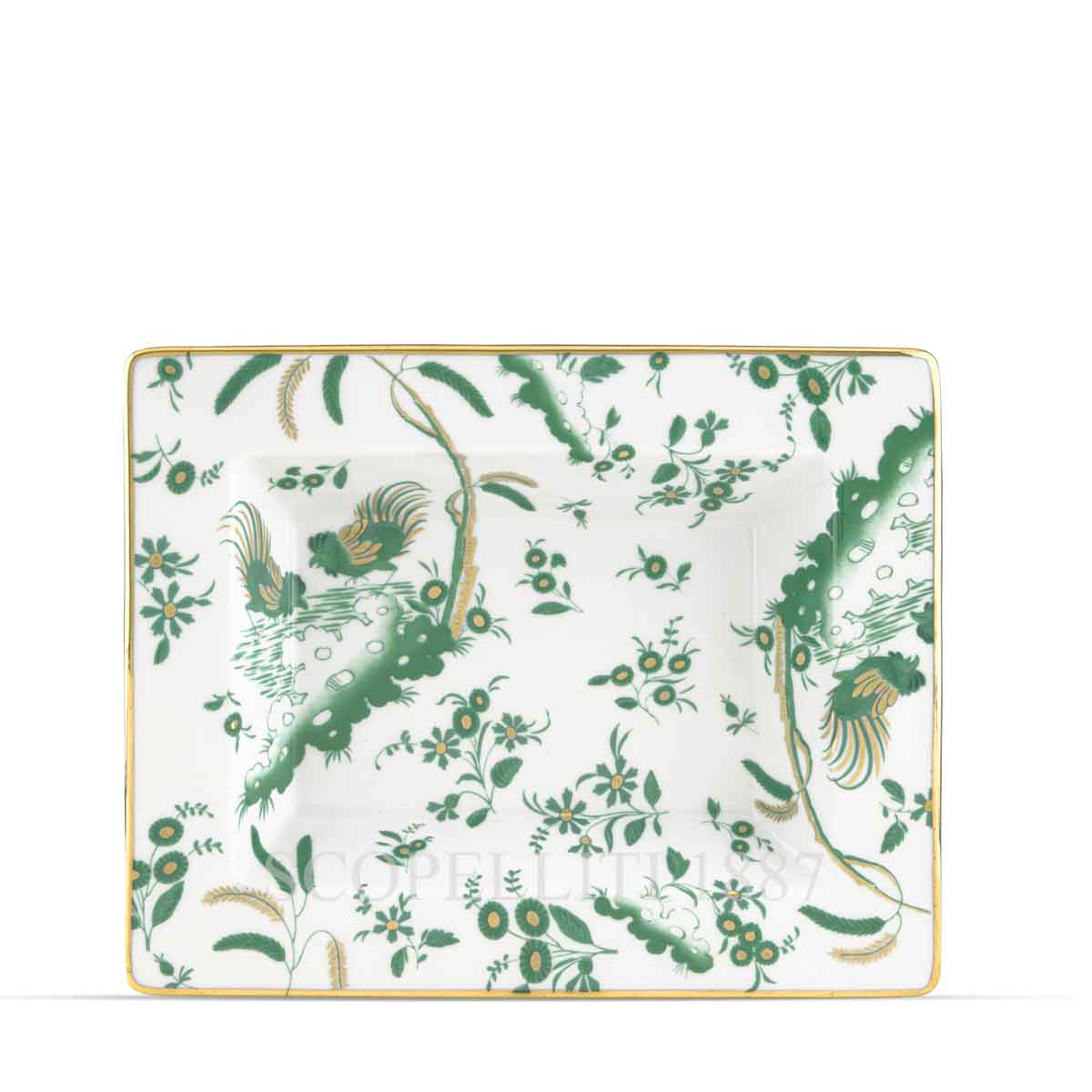 The Ginori 1735 Oro di Doccia Giada Rectangular Change Tray is a refined porcelain accessory designed to combine elegance and function. Its jade green hue, highlighted with Ginori’s signature gold trim, makes it a luxurious addition to any tabletop or dresser. Perfect for holding keys, jewelry, or small daily essentials, this piece blends historical artistry with contemporary design sensibility. A true expression of the Florentine Manifattura’s craftsmanship, it reflects centuries of tradition reimagined in a timeless style.