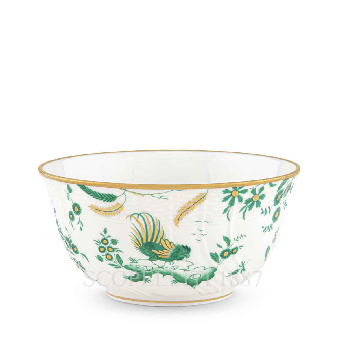 The Ginori 1735 Oro di Doccia Giada Rice Bowl is a beautifully crafted porcelain piece designed for serving rice, side dishes, or small portions. The soft jade Giada hue, paired with elegant gold accents, enhances any table setting with its sophisticated aesthetic. Made in Italy, this rice bowl reflects Ginori’s dedication to timeless craftsmanship and refined artistry. Part of the Oro di Doccia collection, this piece draws inspiration from the renowned Florentine artist Ferdinando Campostrini’s 1740 designs, which include intricate floral hatchings and Ji Ondori roosters—symbols of boldness and grace from Eastern culture. The gold detailing adds a touch of opulence, making each piece a unique statement of luxury. Available in Giada, as well as light blue and red, the Oro di Doccia collection offers versatility and elegance, perfect for creating distinguished table settings.