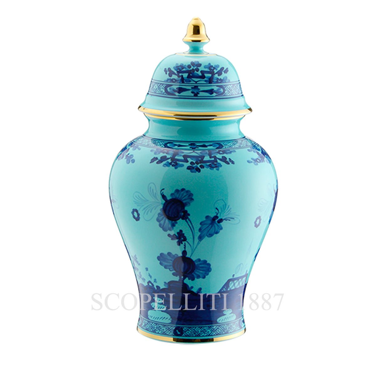 The Ginori 1735 Potiche Large Vase With Cover Oriente Italiano Iris is part of the prestigious Oriente Italiano collection, where Eastern decorative influences merge with Italian porcelain excellence. This collection’s striking color palette, ranging from soft pastels to vibrant hues, allows for bold and refined combinations. A perfect gift for collectors and lovers of fine décor, this Potiche Vase is a masterpiece that embodies the artistry and heritage of Ginori 1735, bringing sophistication and character to any home.
