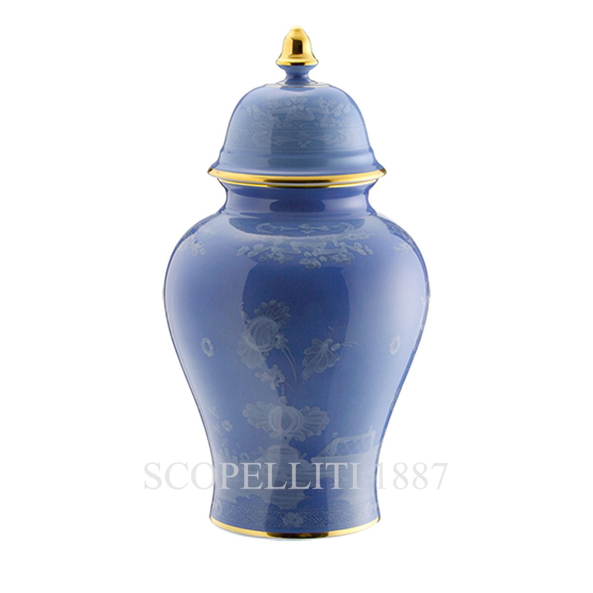 The Ginori 1735 Potiche Large Vase With Cover Oriente Italiano Pervinca is a statement piece of fine Italian porcelain, combining classic elegance with exquisite craftsmanship. The Ginori 1735 Potiche Large Vase With Cover in Oriente Italiano Pervinca is an icon of refined luxury and artisanal excellence. Its graceful curves, intricate floral design, and striking periwinkle blue hue make it a perfect centerpiece for sophisticated interiors. Whether displayed on its own or as part of a curated collection, this vase adds a touch of timeless opulence to any setting. A coveted collector’s item, it also serves as an extraordinary gift for lovers of fine Italian craftsmanship.