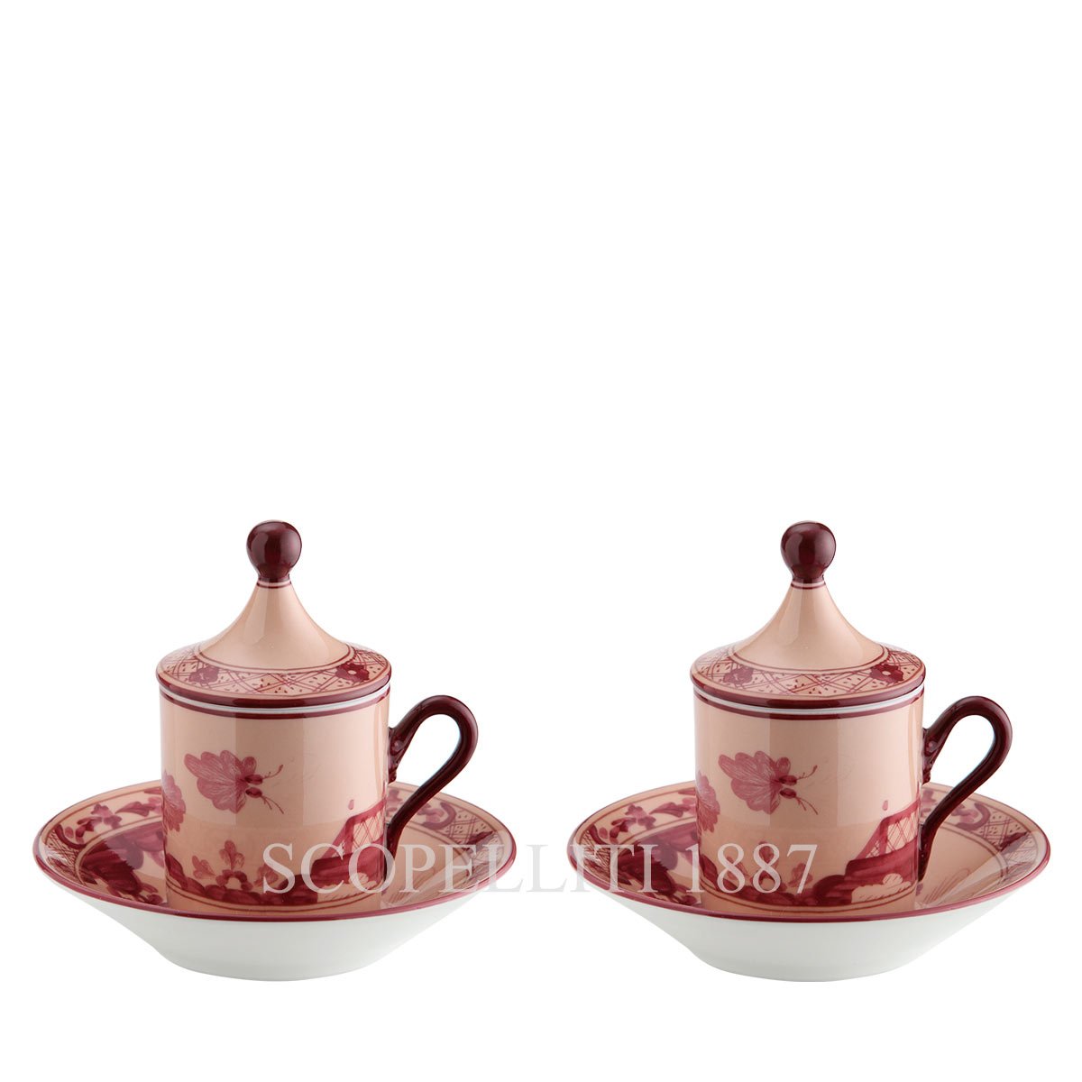 Ginori 1735 Téte a Téte Coffee Set Oriente Italiano Vermiglio – Fine Porcelain with Gold Detailing The Ginori 1735 Téte a Téte Coffee Set in the Oriente Italiano Vermiglio pattern is the epitome of elegance and sophistication. Crafted from fine porcelain and adorned with gold accents, this set is ideal for a luxurious coffee experience for two. With a capacity of 80 ml, the set is perfect for enjoying a refined coffee break or hosting a small gathering. The vibrant vermilion tones of the porcelain bring warmth to any setting, while the gold detailing adds a touch of opulence. This Téte a Téte Coffee Set is an exceptional choice for elegant gifting, making it ideal for special occasions or as a sophisticated addition to your own collection.