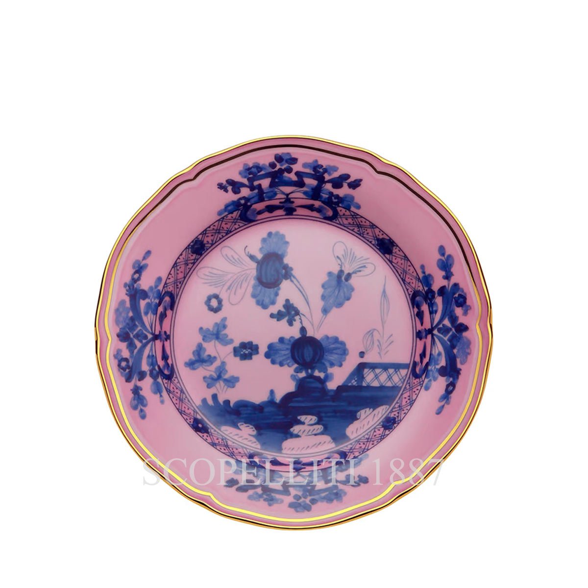 Ginori 5 piece place setting Oriente Italiano Azalea is a dinner set that includes 1 each of the Dinner Plate, Dessert Plate, Bread & Butter Plate and Tea Cup with Saucer. Each Azalea piece is embellished with lustrous pure gold trim. Oriente Italiano is a colorful collection of tableware, tea and coffee sets and home décor items that embodies in its vast assortment the artisan passion that has been a hallmark of the brand for nearly three centuries. A passion by which it has been driven to great heights, daring in the study of colors to be applied to porcelain pieces and in quest for designs that have marked the history of Made in Italy style. Each Ginori 1735 Oriente Italiano piece bears the “carnation” floral motif dating back to the ceramic tradition of Faenza. It was reinterpreted in own style applied using the most refined artisan techniques.